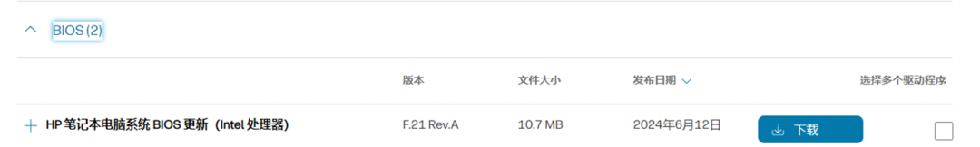 进入惠普官网,输入产品型号,更新最新版本驱动BIOS