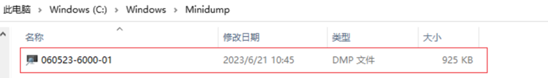 之后若再出现蓝屏会在【C:\Windows\Minidump】路径下,写入蓝屏文件