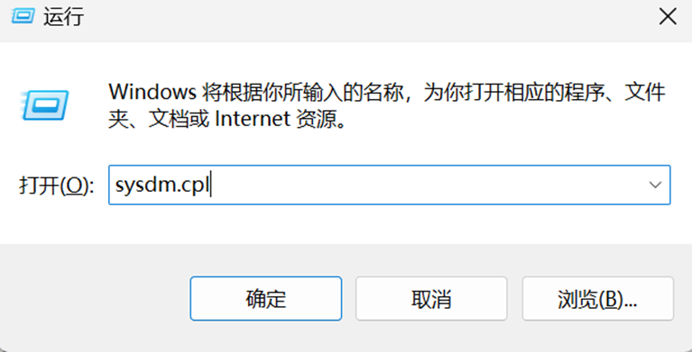 1.按下【Win+R】输入【sysdm.cpl】回车/点击确定