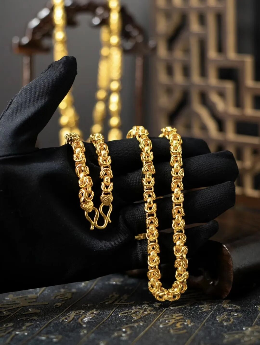 一些大气的黄金首饰,能彰显出男士的品味和高贵气质,是很适合爸爸们的年纪去佩戴的一种首饰材质。