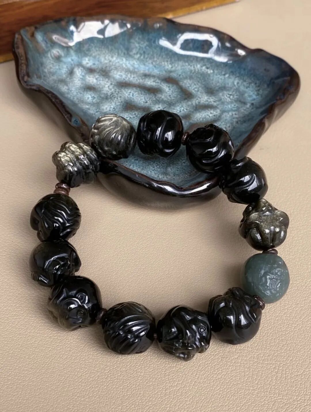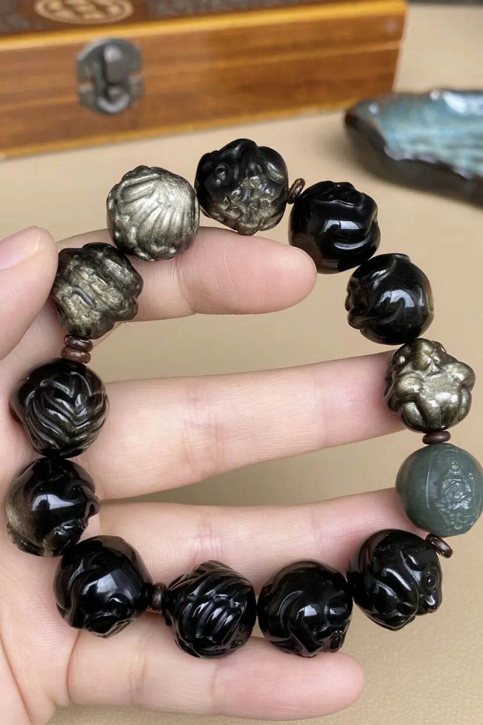 黑曜石的色调给人一种沉稳大气的感觉,因其强大的能量和功效而被广泛认为适合男士佩戴。