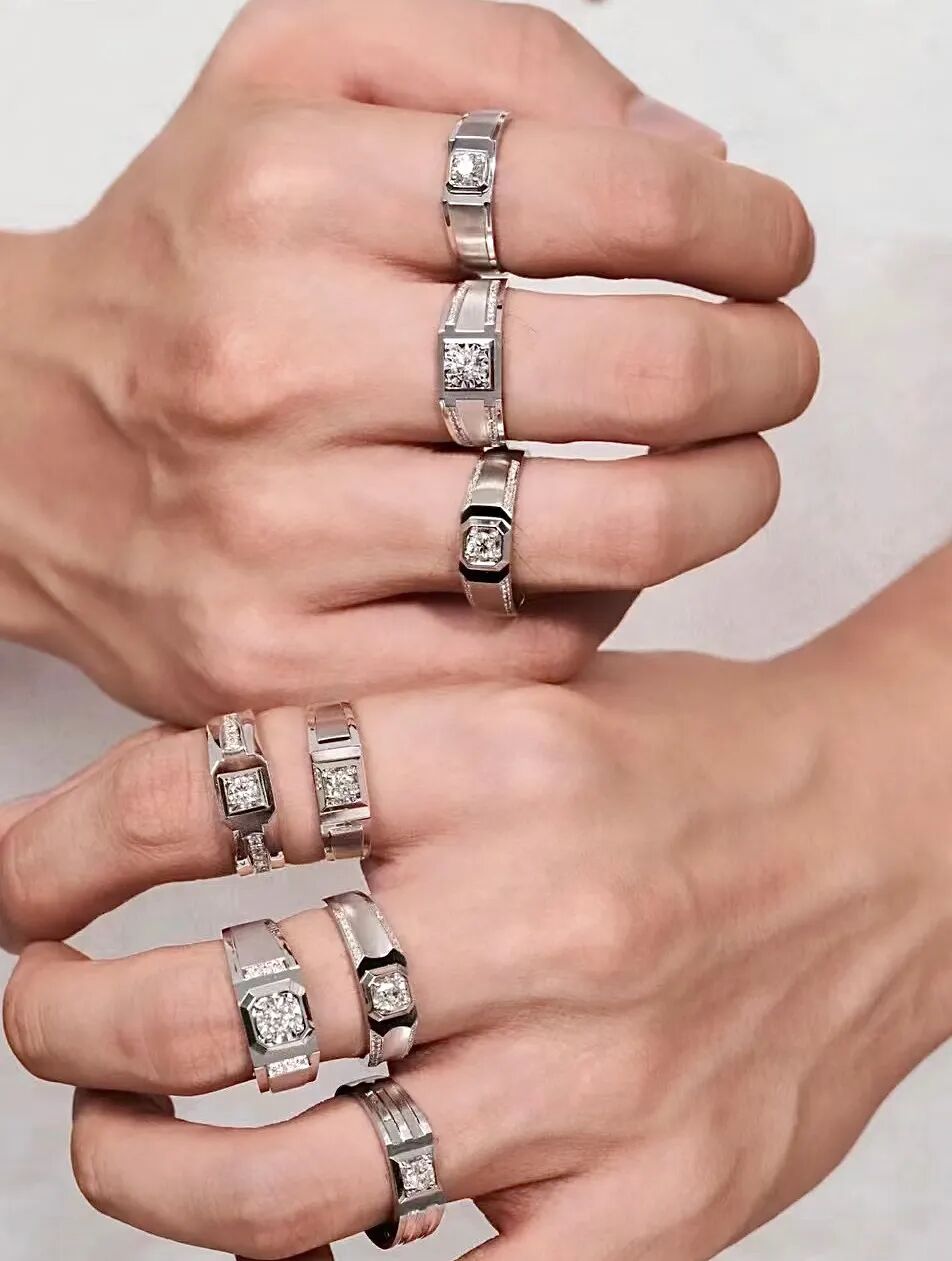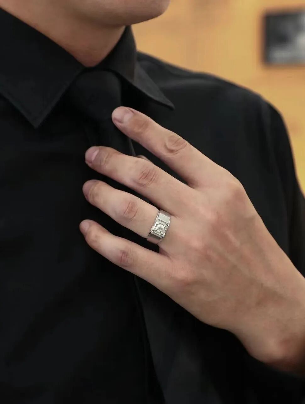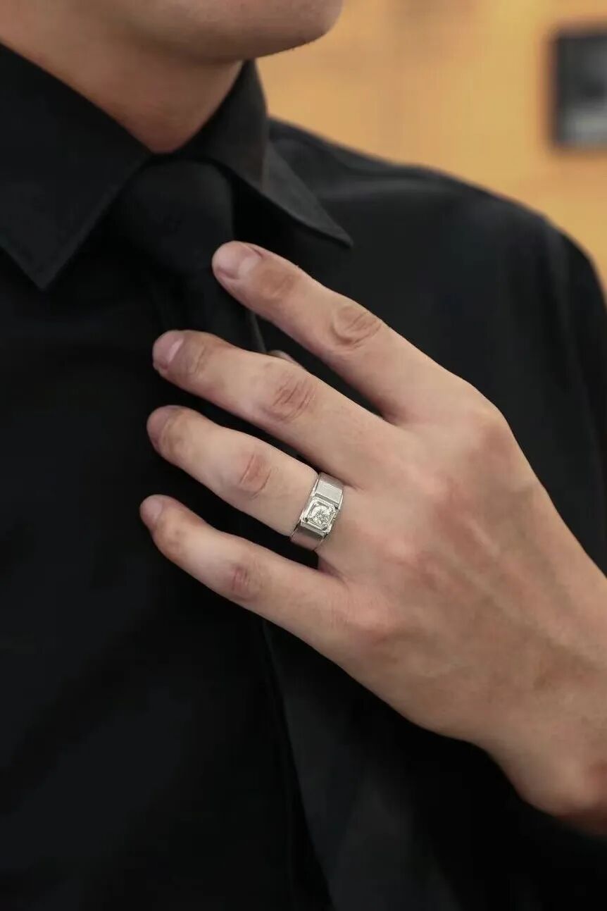 男士佩戴的戒指比较厚重,戒面和戒圈直径相对较大。