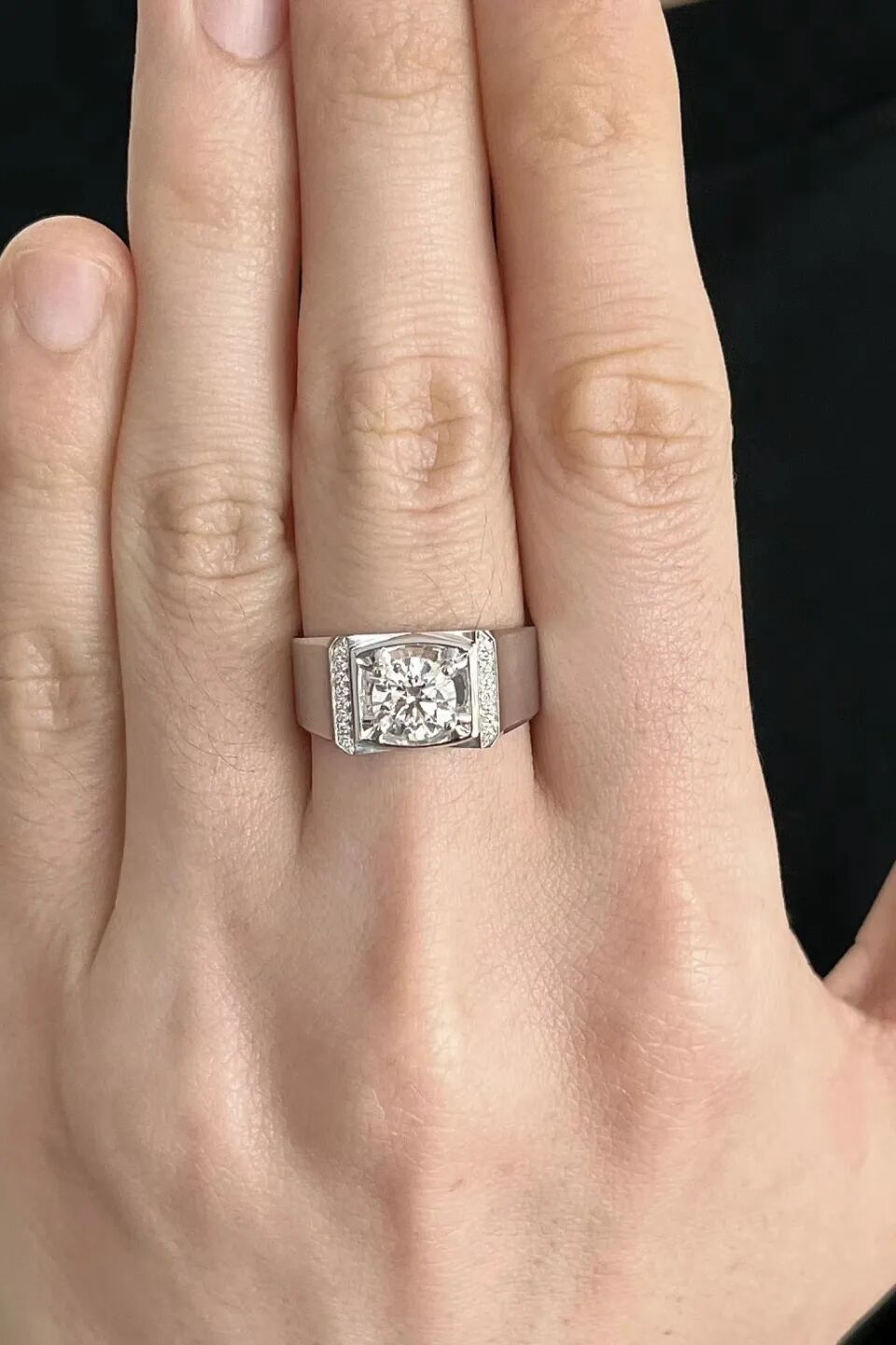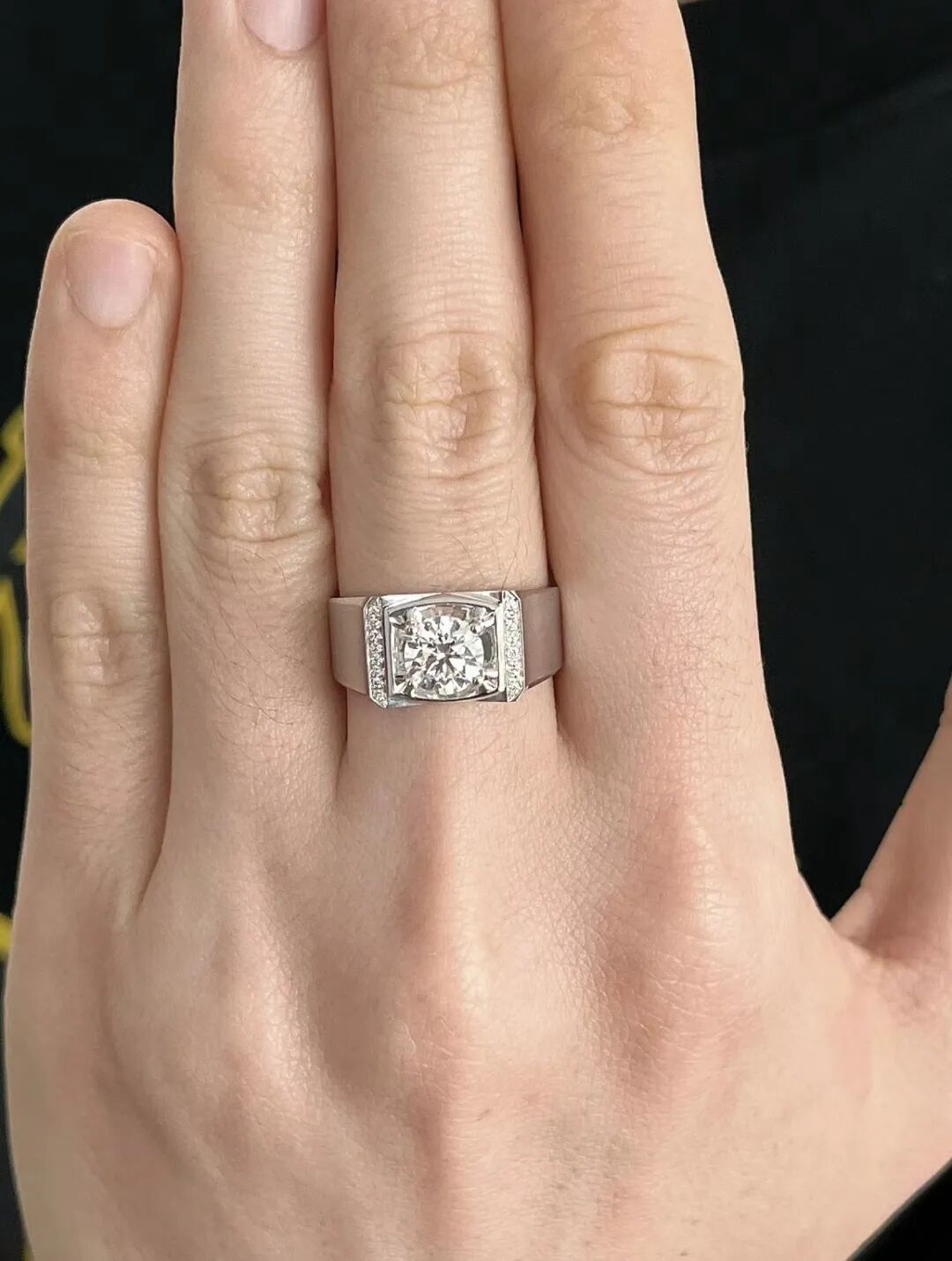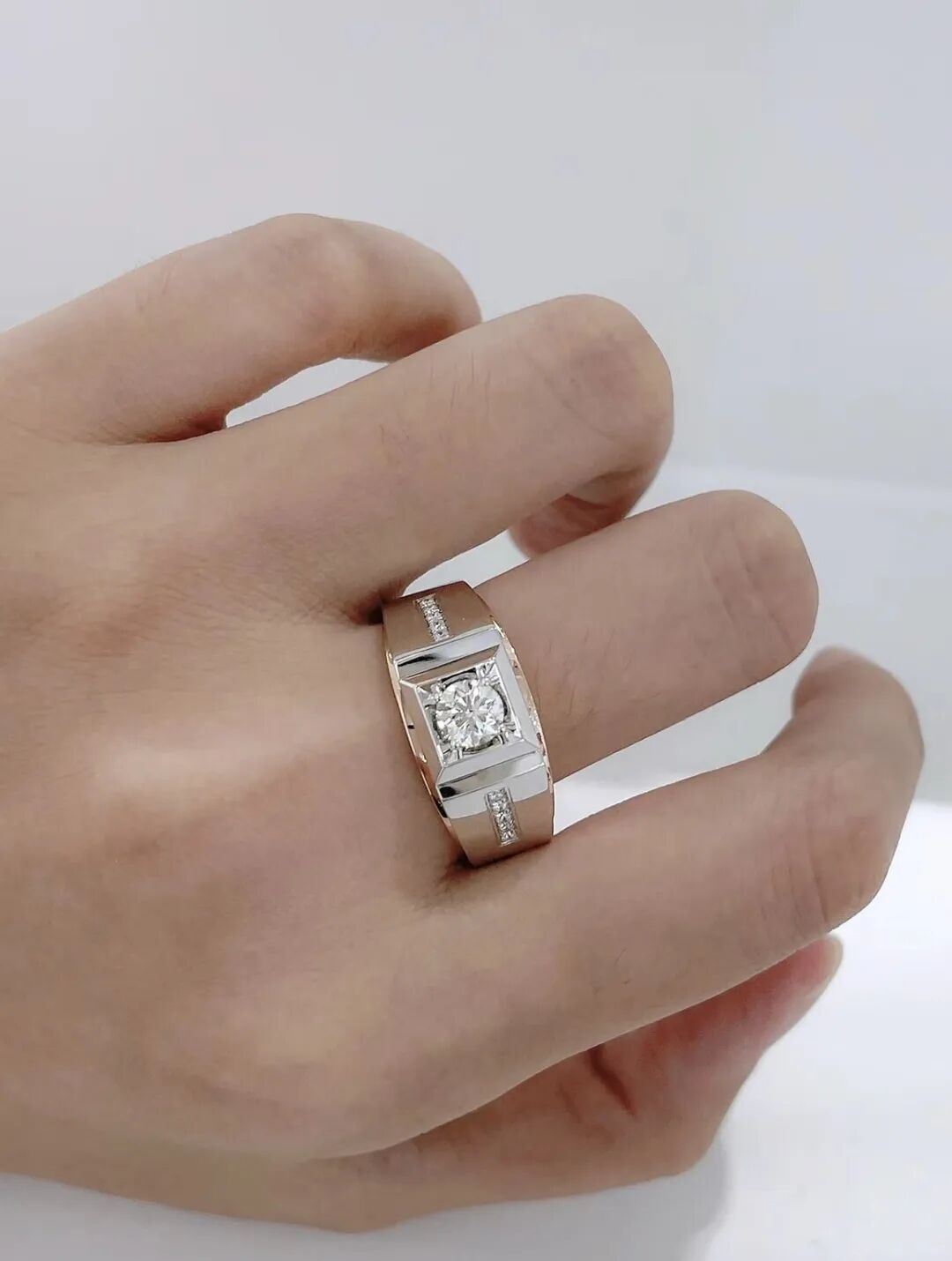 男士佩戴的戒指比较厚重,戒面和戒圈直径相对较大。