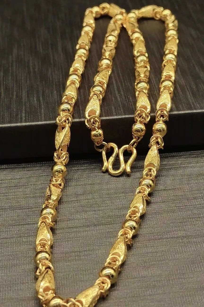 项链是男士在许多场合都可以佩戴的首饰,男士项链的造型一般比较粗犷,质量厚重,其造型和花纹图案也相对简单,主要采用简单的方、圆、三角等几何图形。男士项链采用黄金、铂金、银等材质制作。