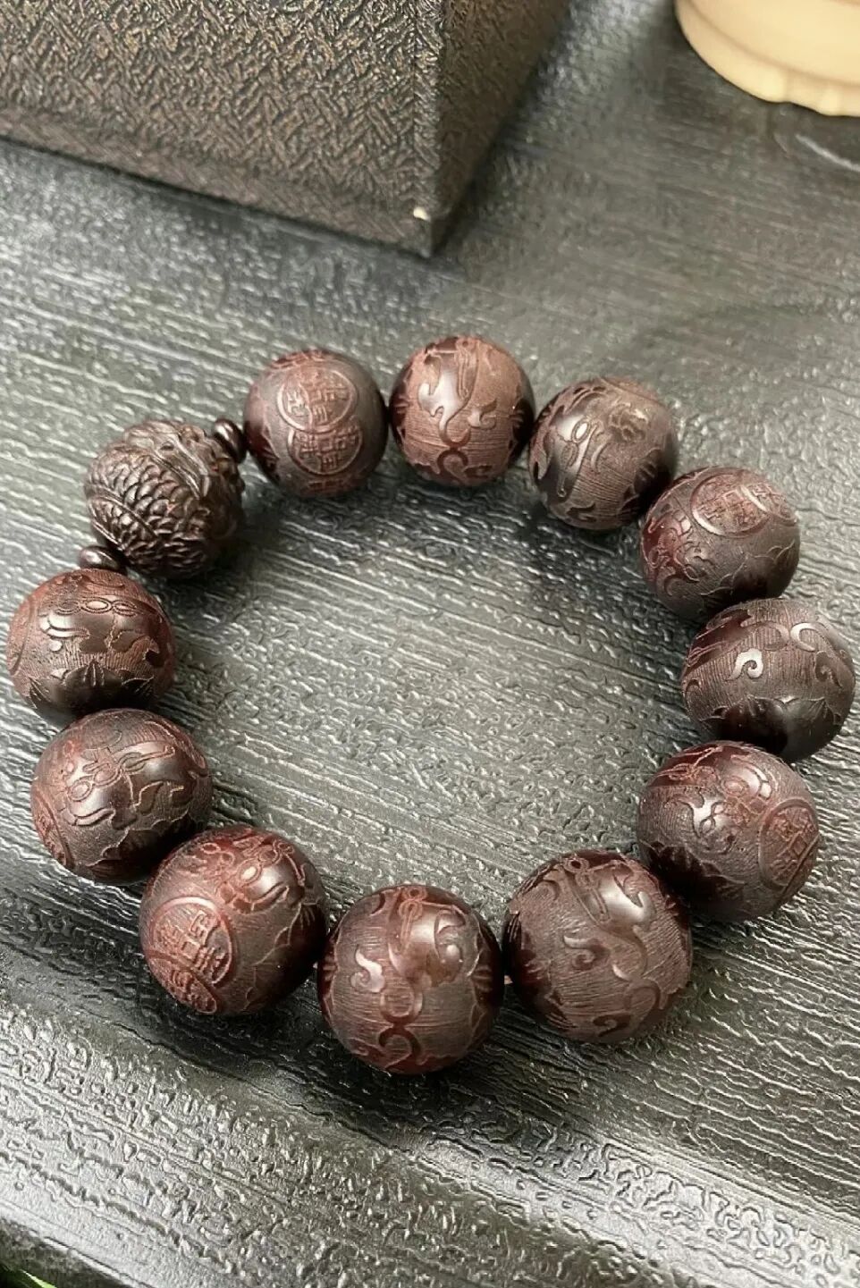 小叶紫檀散发出来的阵阵馨香使人心绪平静,易于思考和安神,据说长期佩戴还能够促进新细胞再生,预防皱纹的出现。