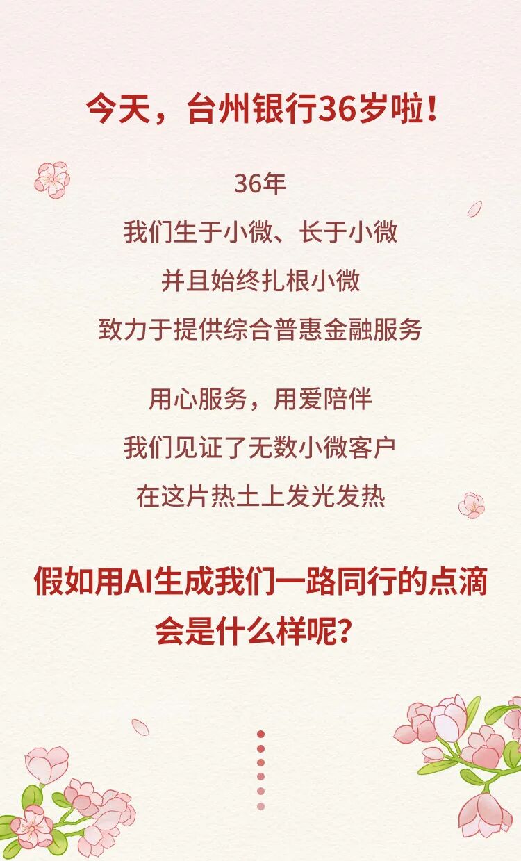 文章内容来源于公众号:台州银行,点此可查看原文,内容版权归相关企业所有,本网站仅供交流学习。若涉及版权问题或存在侵权情况,请及时与我们联系,我们将第一时间进行删除处理。