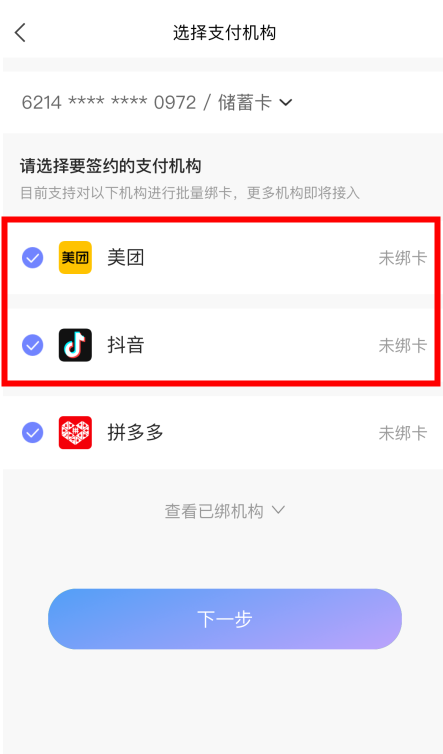 选择【抖音】和【美团】