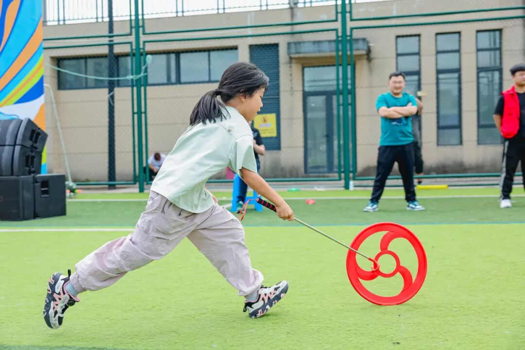 比赛间隙,参与足球嘉年华暨儿童节趣味活动的小啦啦队员们为比赛更添欢乐,“无敌风火轮”“盲盒跑酷”,小朋友们玩得不亦乐乎。