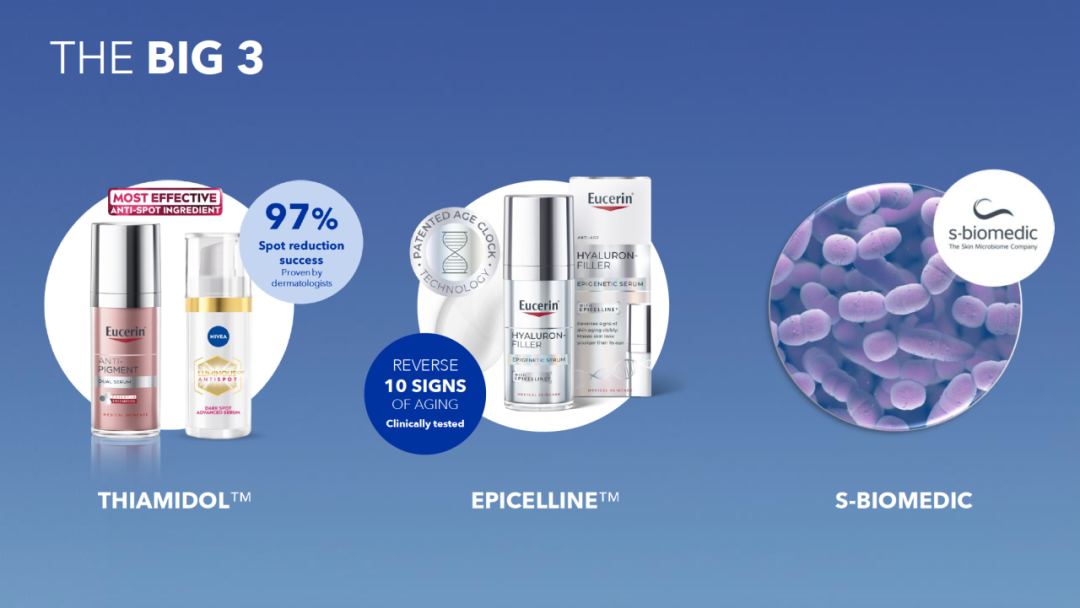 未来增长的关键驱动力是拜尔斯道夫在护肤品和服务领域开创并实现变革性创新的能力凭借其在创新方面的卓越成就,拜尔斯道夫公司正处于极佳状态,有望在护肤市场的三个高价值领域实现强劲增长——色素沉着、抗衰解决方案和皮肤微生物组学。