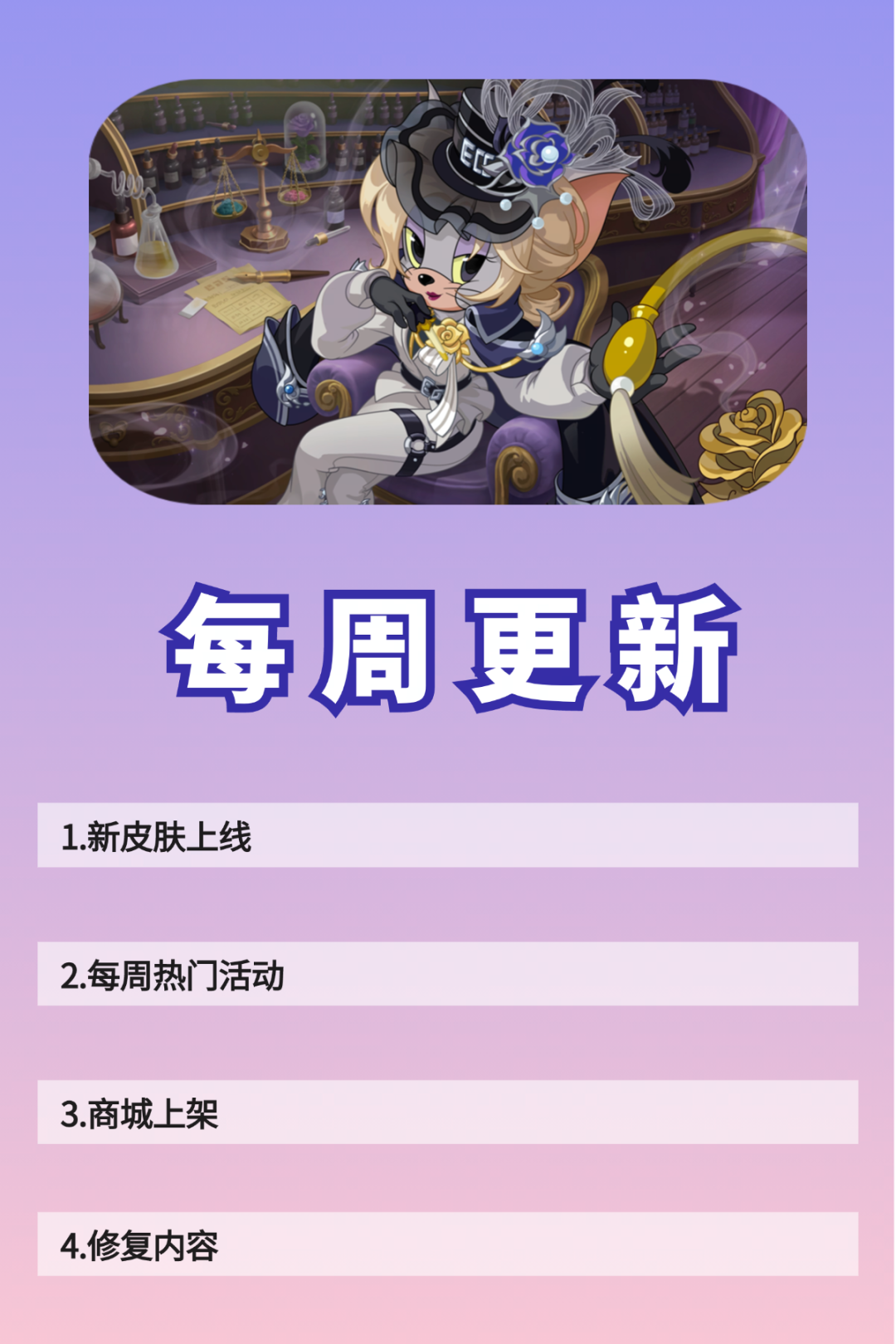 以上就是本周(6月27日)更新维护的全部内容啦!感谢小伙伴们对于《猫和老鼠》手游的支持和喜爱,愿欢乐永远陪伴大家左右!