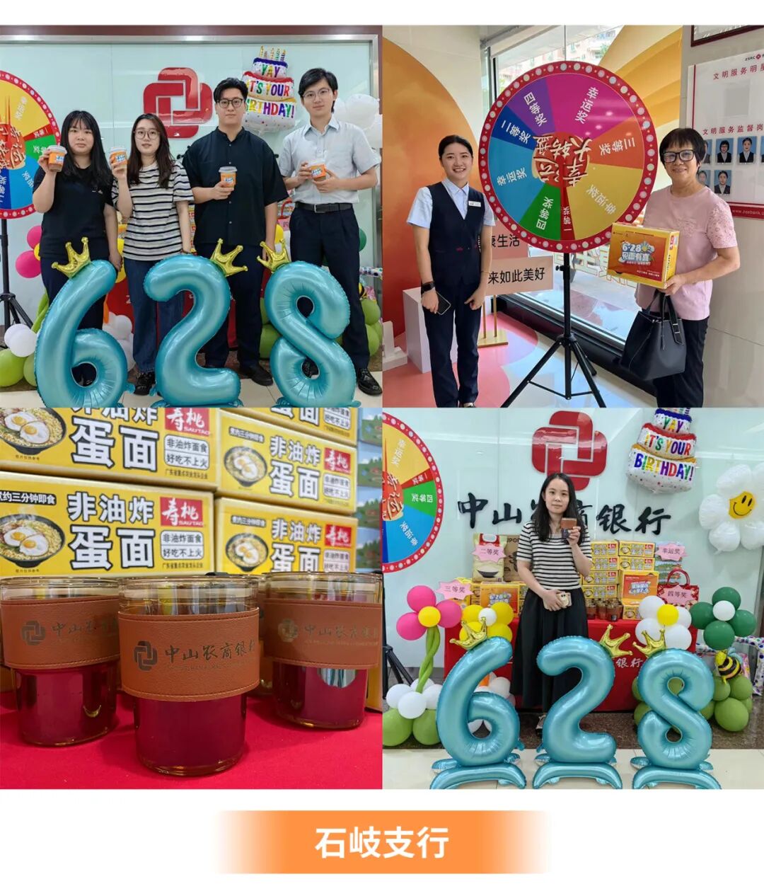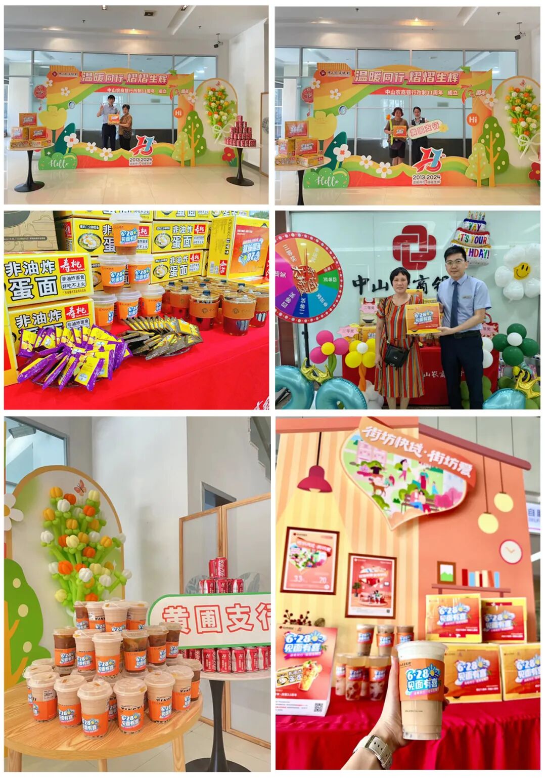 “一年一度”的周年庆见面礼活动如期举行。凡到任一营业网点办理业务并转发集赞11个,即可领取周年见面礼——寿桃鸡蛋面。在各支行营业部还可领取周年惊喜礼——手作饮料。网点客户反响热烈,参与度极高,一起共享这份周年庆的喜悦。