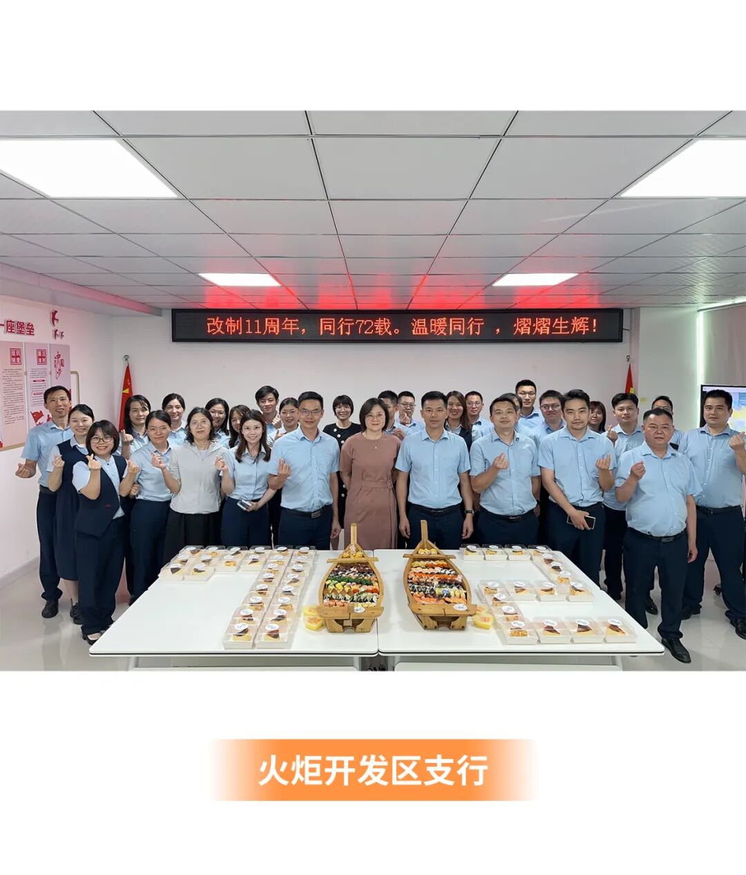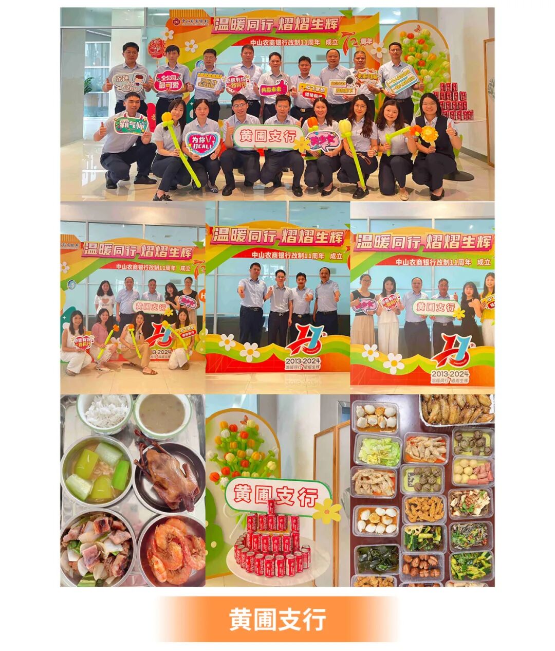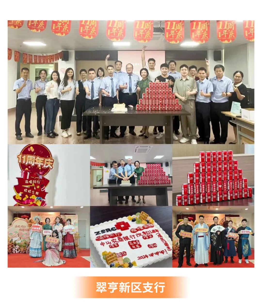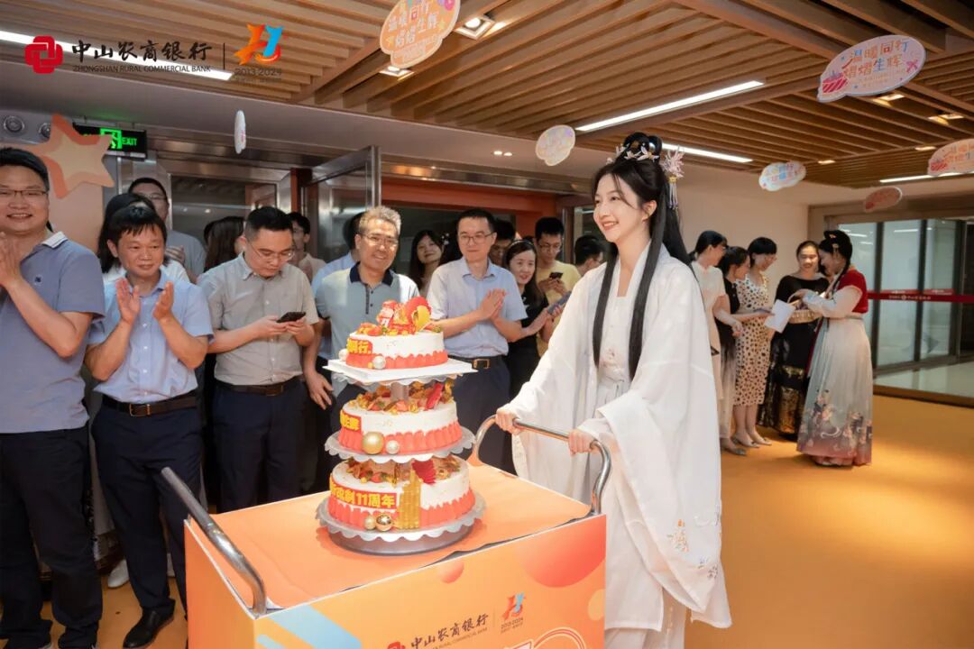 周年庆午餐设丰富菜式、加餐盲盒,给大家带来味蕾惊喜和家的温暖。下午更有国风“天团”为总行各部门送上创意水果和点心,共度温馨时光!