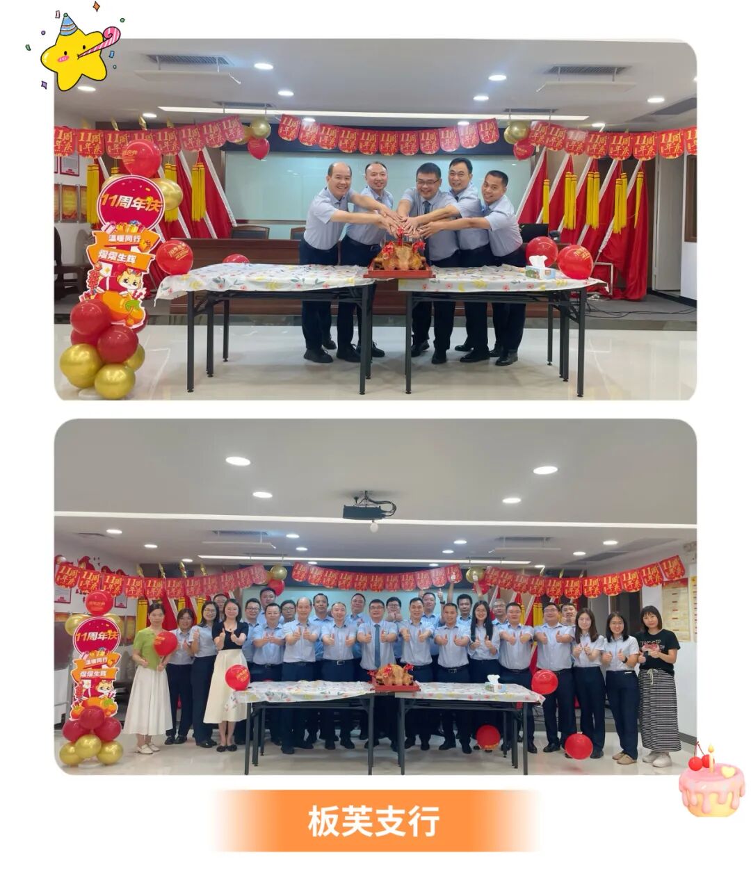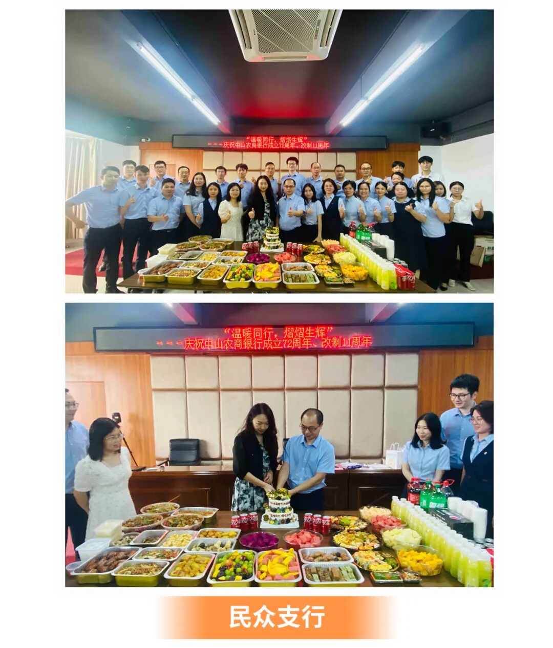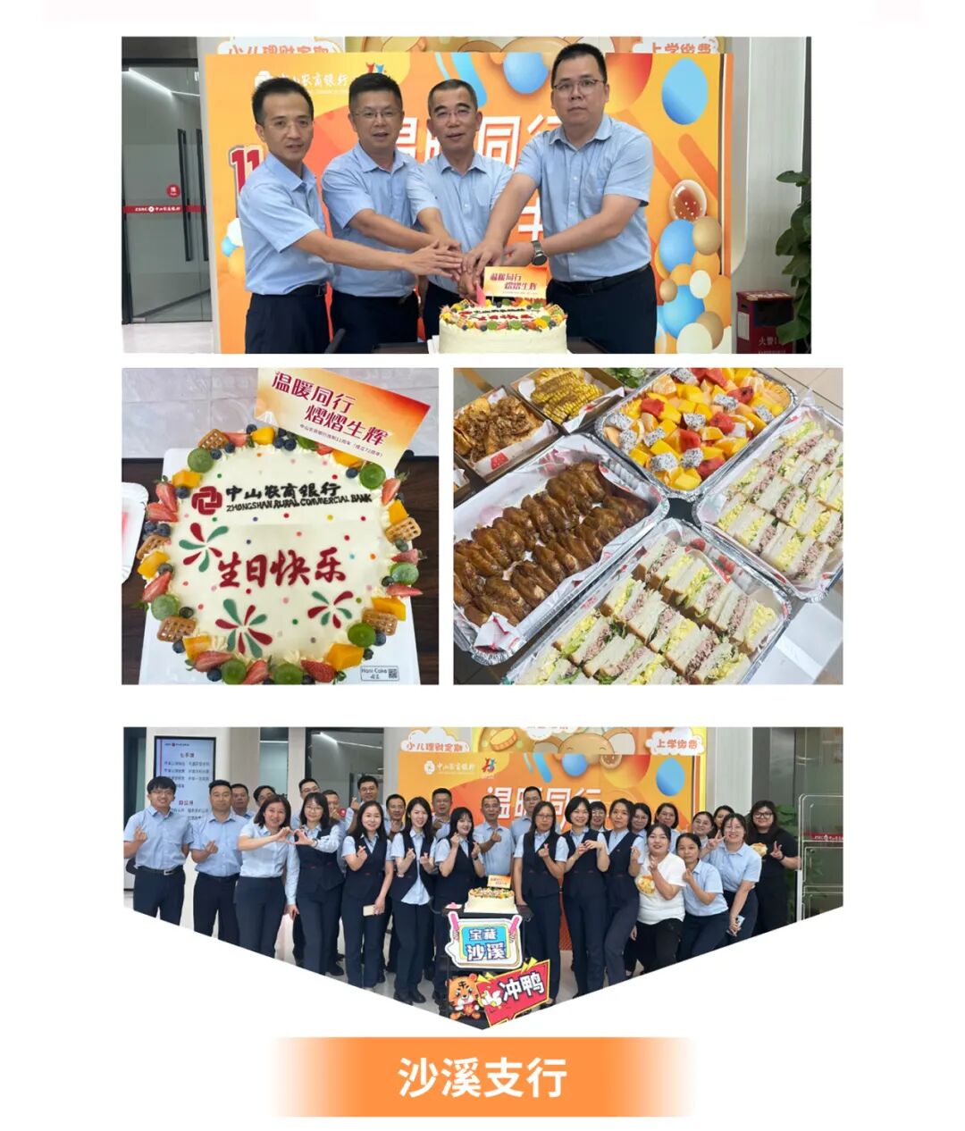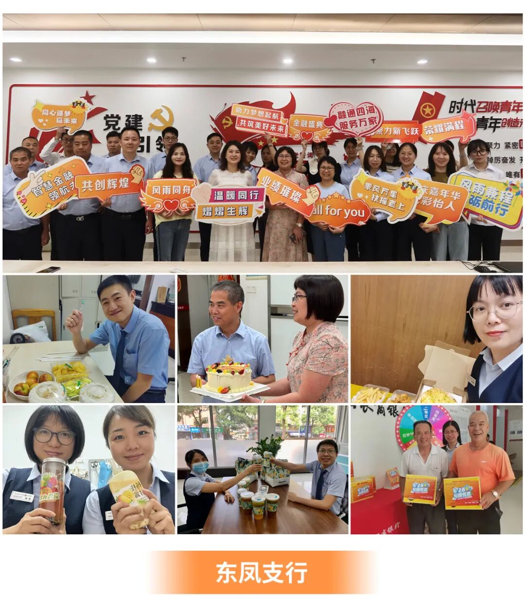 周年庆午餐设丰富菜式、加餐盲盒,给大家带来味蕾惊喜和家的温暖。下午更有国风“天团”为总行各部门送上创意水果和点心,共度温馨时光!