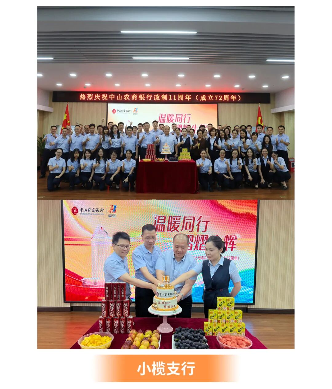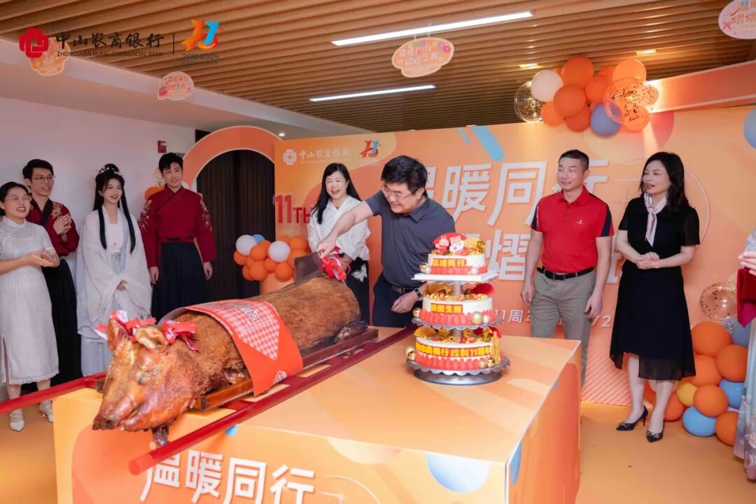 仪式上,总行领导分别对中山农商银行表达了美好祝愿,并一起切烧猪送祝福、切蛋糕节节高,与在场员工共享行庆喜悦。