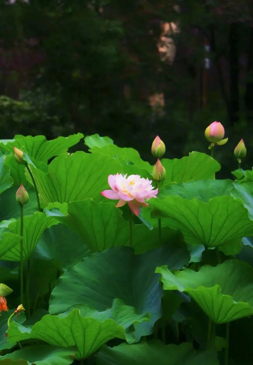 △ 荷花与日落后的树