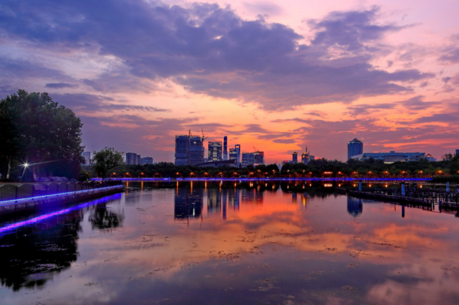 黄兴公园晚间的蓝色渐变调富有诗意,临近7月浣纱湖中点缀上了各色花苞,再过不久便可见到满池盛开的荷花,白日无法欣赏它娇艳的身姿,夜间可别错过了。
