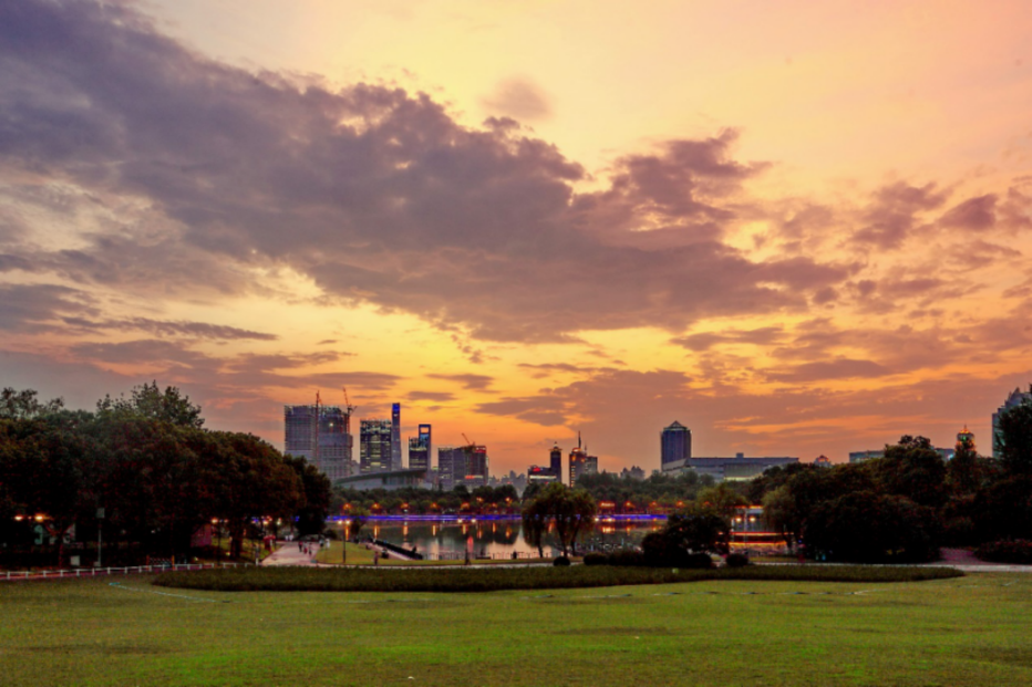 傍晚夜暮将落未落时,音乐之林的大草坪就是最适合玩飞盘的地方,即使什么也不干,去饮品店点杯冰饮,找块适合自己的草坪躺下,独自看霞光染上双子山,静候夜幕的降临,也是繁忙都市里不可多得的享受。