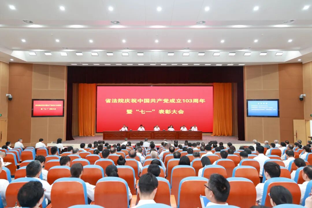 会议强调,今年是中华人民共和国成立75周年,是实现“十四五”规划目标任务的关键一年,是全面贯彻落实习近平总书记关于党的建设的重要思想的开局之年,是推进中国式现代化湖北实践的重要一年。开局之年,当有开局之势;关键之年,当有关键之为,省法院各级党组织和全体党员干部要以这次“七一”表彰大会为契机,不断弘扬先进,争先创优,坚决贯彻落实党中央和省委各项工作部署要求,自觉站在全局找准定位,主动拉升标杆争创一流,切实将广大党员干部干事创业的积极性、责任感和精气神转化为谋划工作的思路、提升审判质效的动力、实现新时代新担当新作为的起点,在各自的工作岗位上做出更大成绩,为助推湖北法院审判事业现代化发展再立新功。