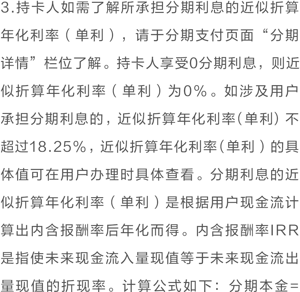8.持卡人办理商户分期前,应仔细阅读并充分知晓商户分期付款业务协议各项内容,并承诺遵守相关条款约定。持卡人可前往www.ccb.cn-信用卡-分期业务-商户分期-客户告知-《中国建设银行龙卡信用卡商户分期业务协议》。