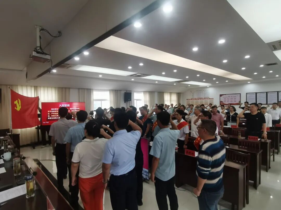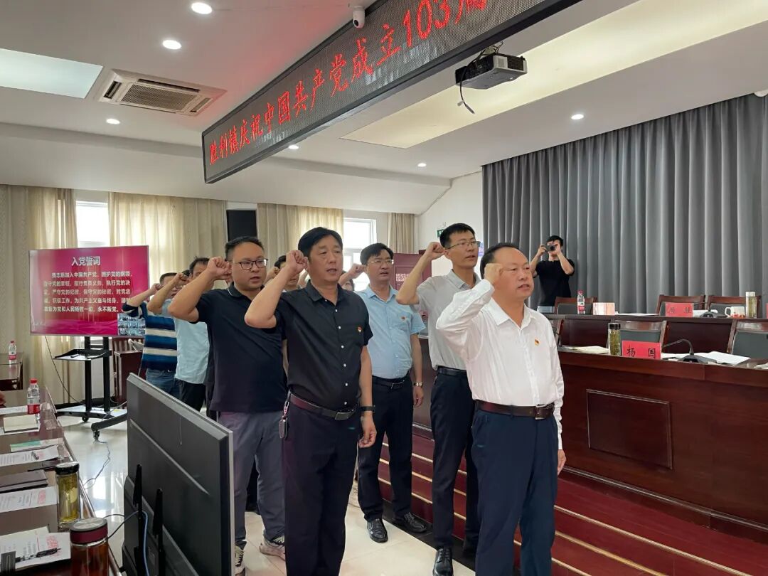 大会在庄严的国歌声中拉开帷幕,胜利镇党委书记、大渡口经济开发区和大渡口镇联合党委副书记金仁安同志带领大家重温入党誓词。