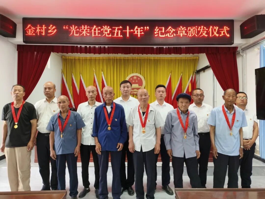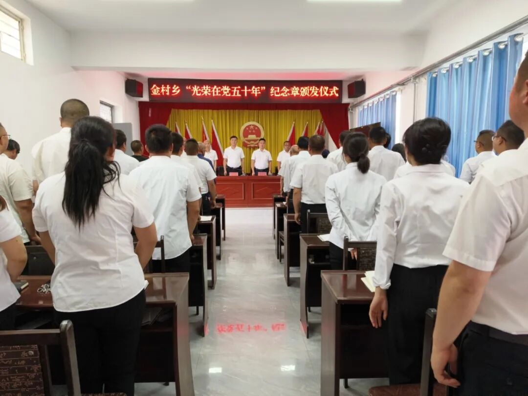 7月1日,金村乡隆重举行“光荣在党50年”纪念章颁发仪式,热烈庆祝中国共产党建党103周年。乡政府全体职工、各村党组织书记以及党员代表共计50余人参与了此次意义非凡的活动。