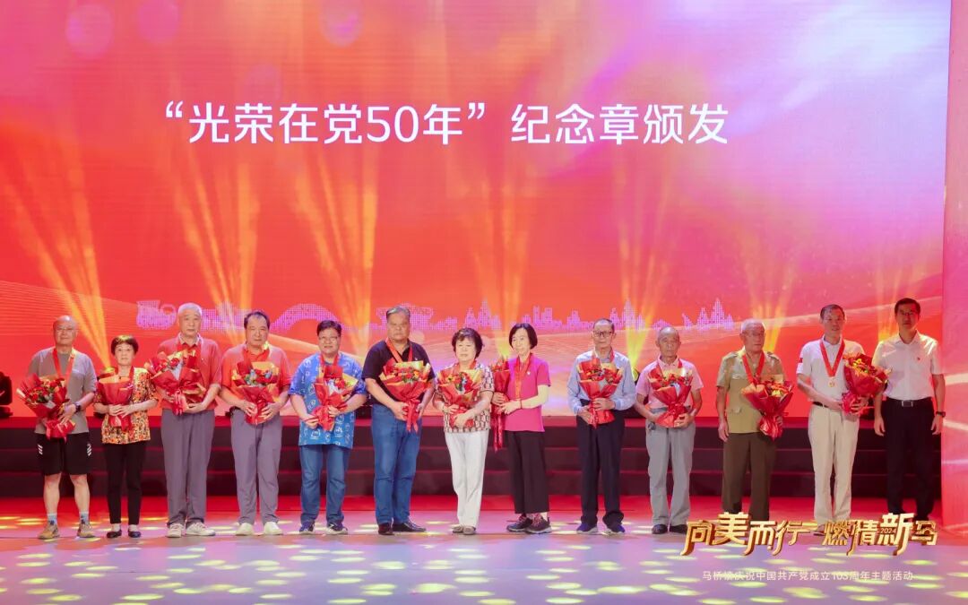 光荣在党50载,一生峥嵘守初心。现场还举行了“光荣在党50年”纪念章颁发仪式,为12名老党员代表颁发纪念章,并表示热烈祝贺和崇高敬意。