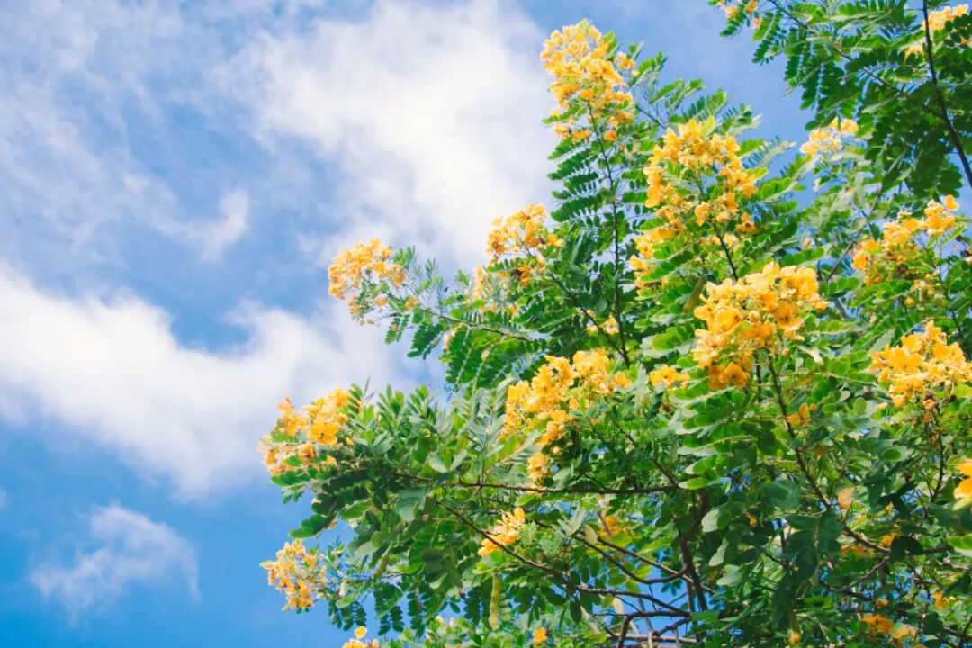 与砖红楼宇相映成趣