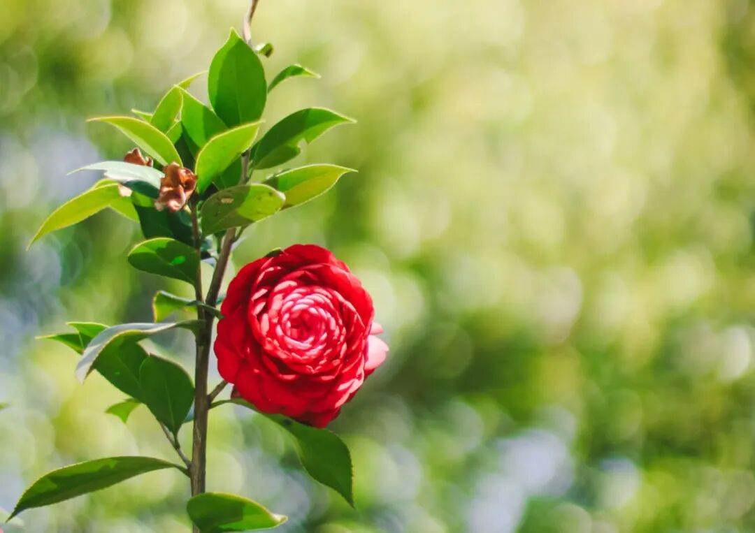 红色的茶花、白色的玉兰