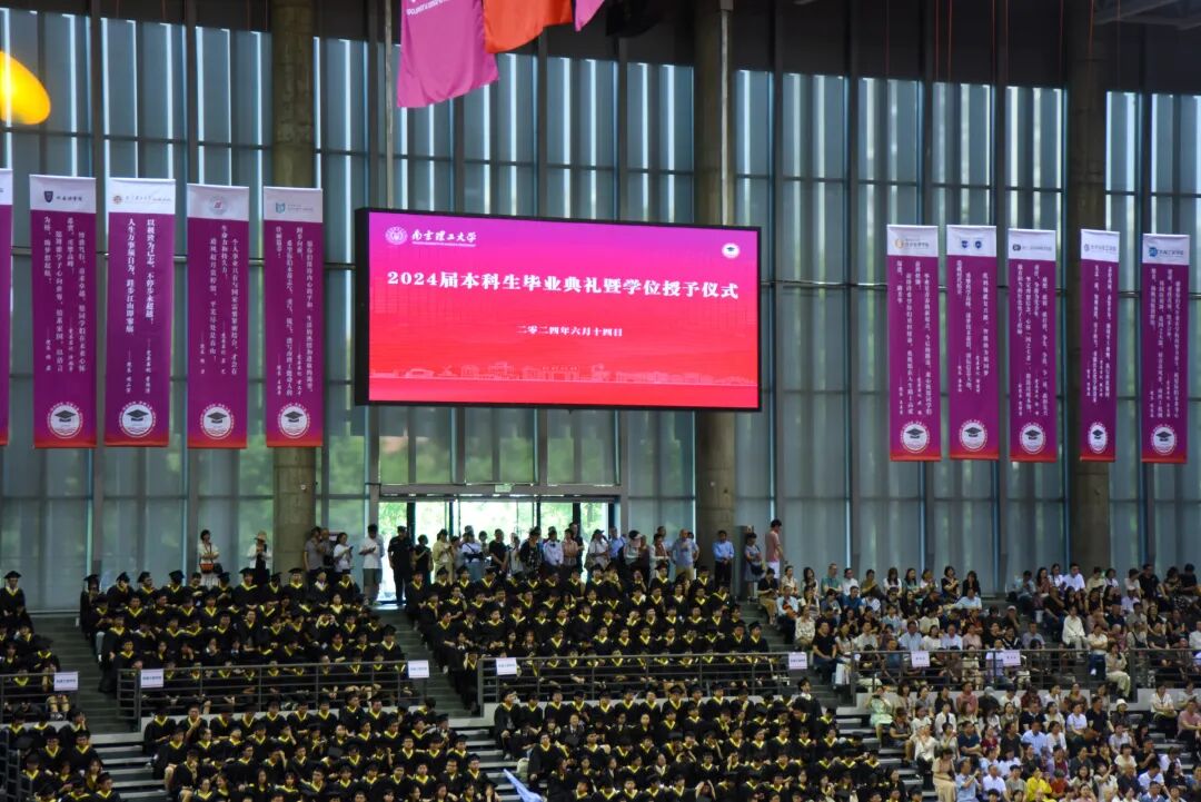 6月14日上午,南京理工大学2024届本科生毕业典礼暨学位授予仪式在体育中心举行。全体在校领导,机关、直属单位及各教学科研机构负责同志,教师代表,本科生辅导员,2024届本科毕业生和亲友代表4000余人共同参加了毕业典礼。