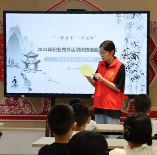 为弘扬非物质文化遗产,推广传统技艺,慈山分院艺术设计服务队学生走进北星社区,开展“一技在手 一生无忧”为主题的职业服务活动。