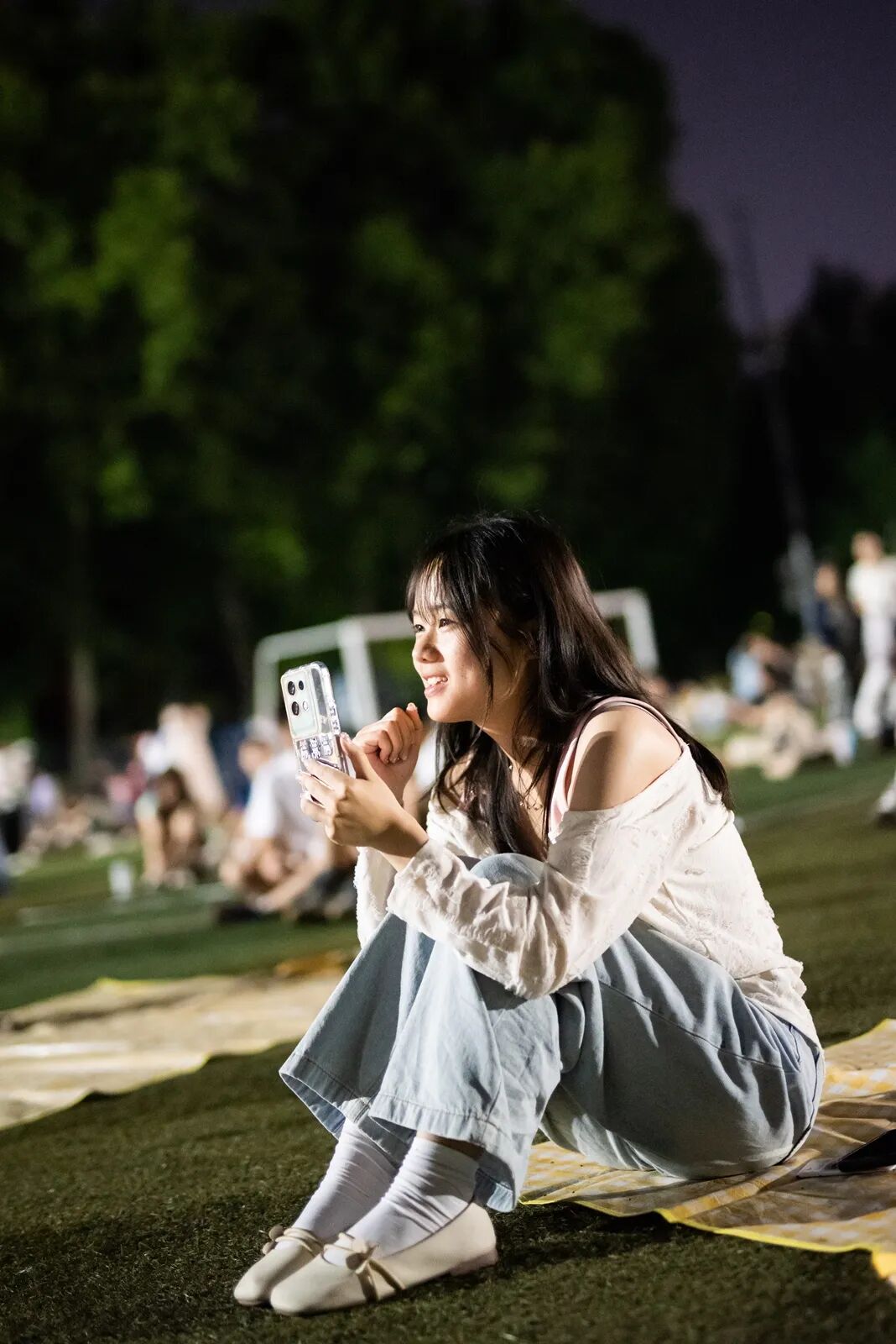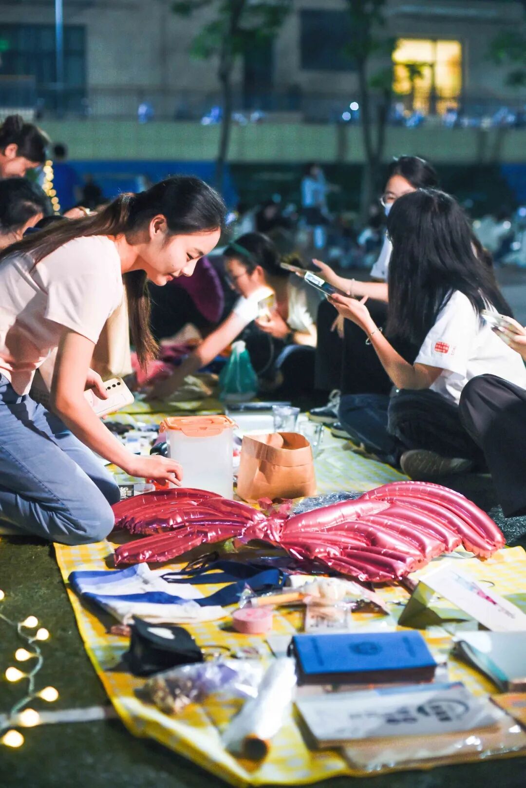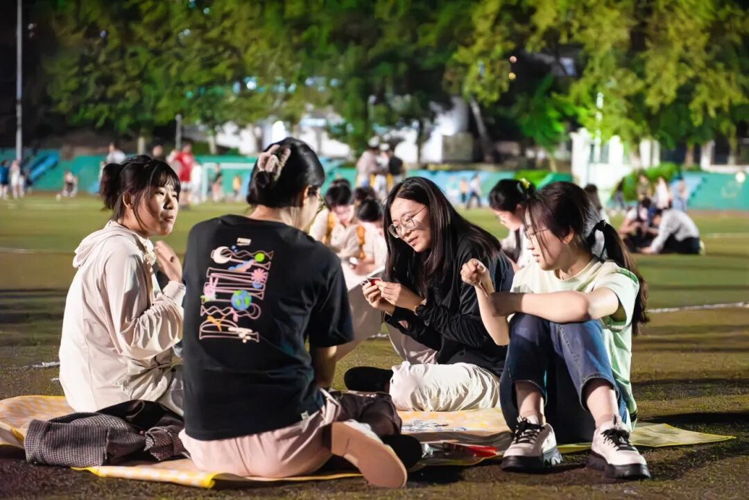 三五成群 席地而坐