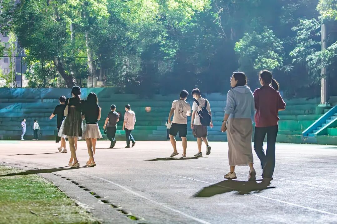 人群从校园各个角落汇聚而来