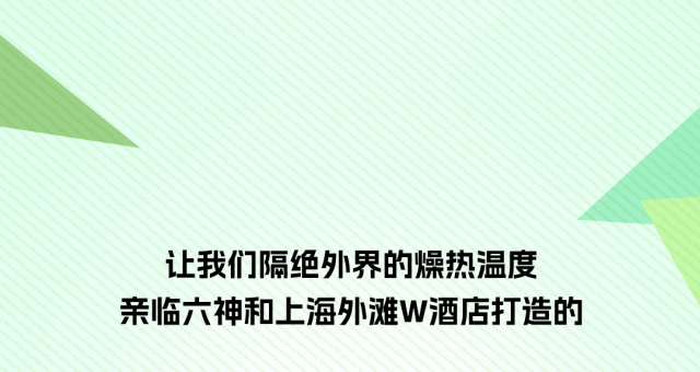 摘要:来到六神 X 上海外滩W打造的专属清凉空间\x0d\x0a一起追光逐夏,玩转清凉