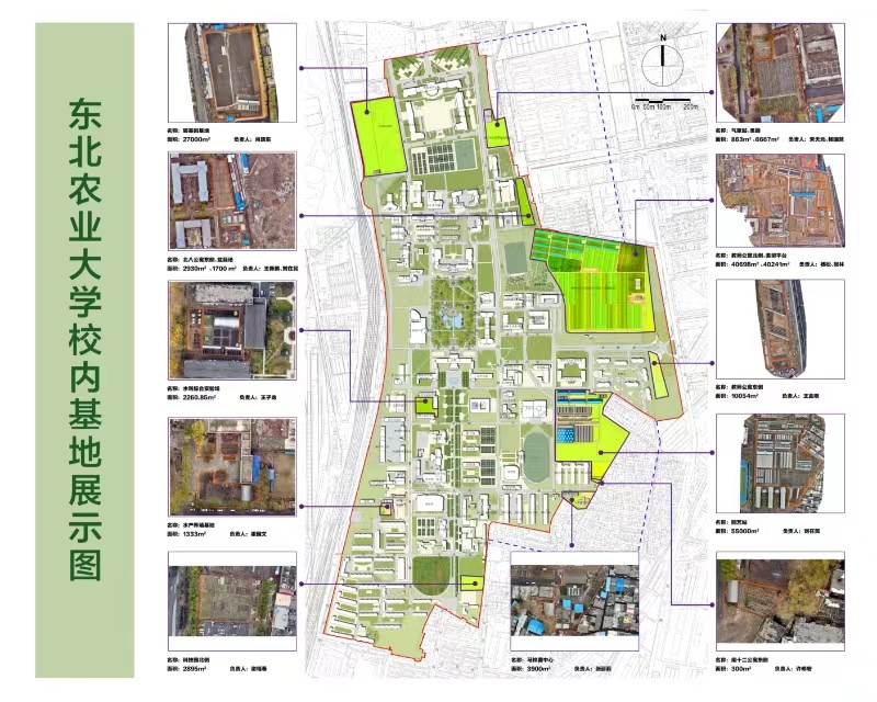 东北农业大学校内基地位于学校本部,总占地面积22公顷,建有园艺实验站、盆栽场、转基因基地、植物表型平台园区、马铃薯研发中心、水产养殖中心、气象站等多个专业场所和设施。校内基地是学校农学、园艺、植物生物科学等相关专业实践教学基地,也是作物学、园艺学、畜牧学、农业资源与环境、生物学、植物保护、农业工程、水利工程等学科60多个团队的科研场所,是学校一流学科和高水平大学建设的重要支撑。