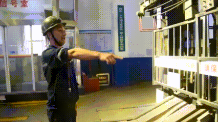 解“势”:通过手臂的举起加手腕转动、平肩、落下加手腕转动指引行车司机,操作货物的起吊、暂停、放下,完成大宗生产物资的装卸。