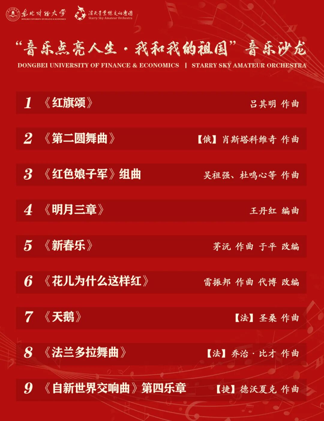 为深入学习宣传贯彻习近平文化思想,贯彻落实习近平总书记关于宣传思想文化工作的重要指示精神,围绕党的二十大关于文化建设的战略部署,切实做好新时代新征程宣传思想文化工作,强化学校美育育人功能,全面服务青年学生成长成才,学校决定邀请满天星业余交响乐团共同举办“音乐点亮人生·我和我的祖国”音乐沙龙,现将活动具体事宜通知如下。