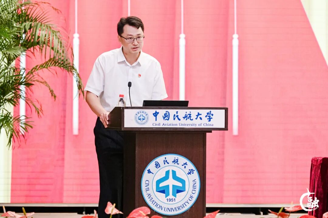 民航优秀共产党员代表、安全科学与工程学院教师田毅在发言中表示作为一名党员,未来将继续保持谦虚谨慎、不骄不躁的作风,不断提高自身素质和工作能力,为党和学校事业的发展贡献更大的力量。