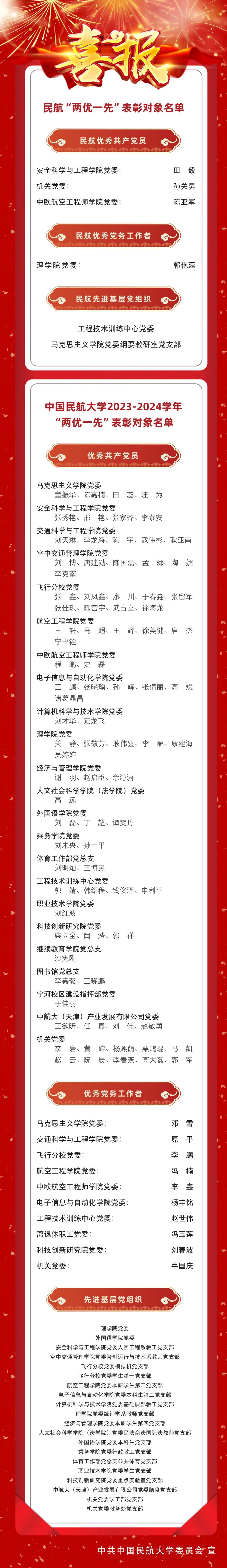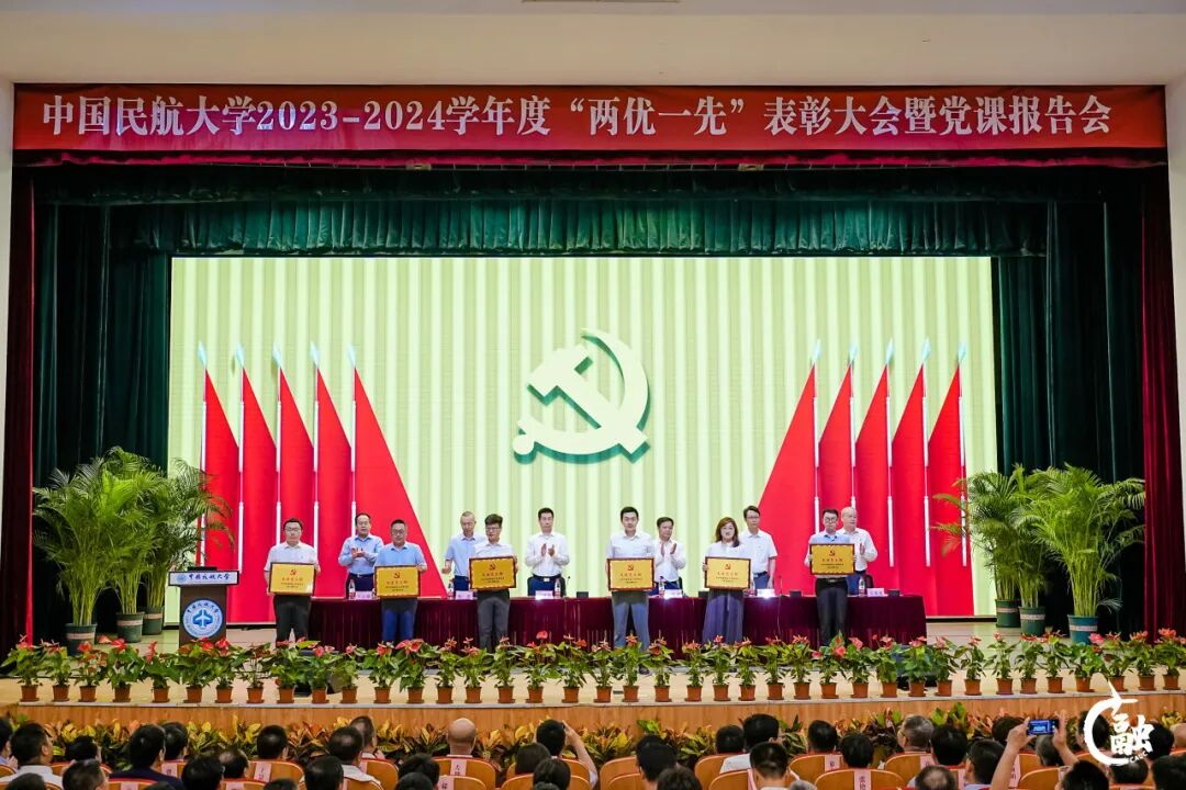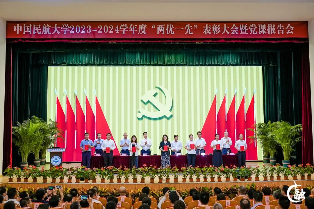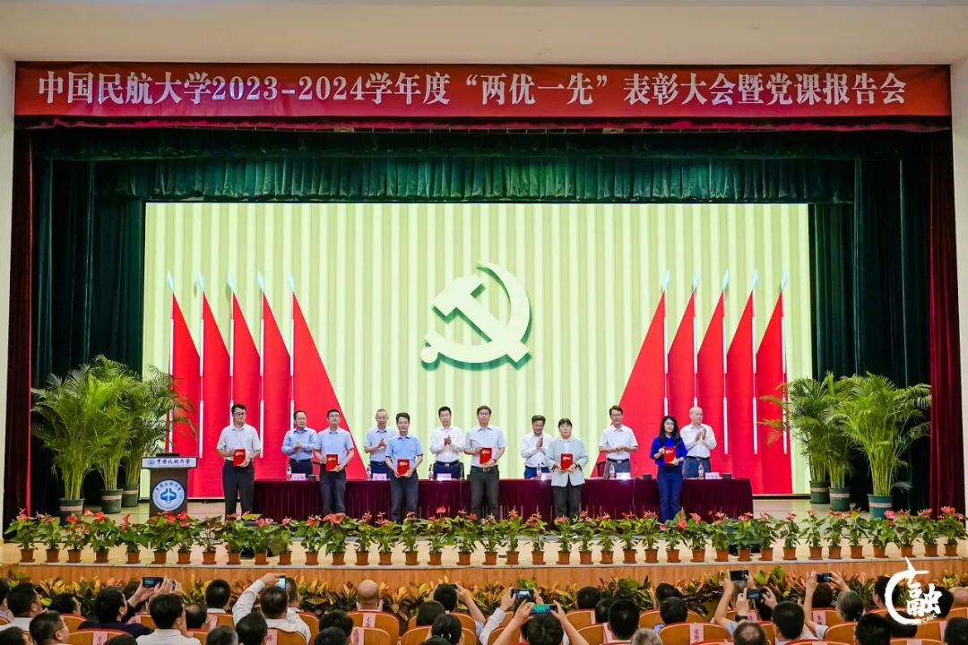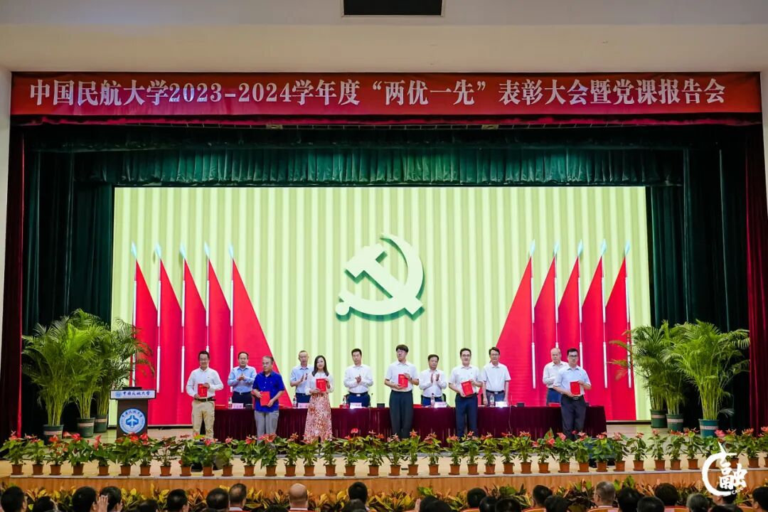 会上,杨新湦宣读中国民航大学2023-2024学年度“两优一先”表彰决定。童振华等87名同志、邓雪等10名同志、理学院党委等20个党组织分别荣获中国民航大学优秀共产党员、优秀党务工作者、先进基层党组织称号。杨虎宣读民航系统2024年“两优一先”表彰决定,田毅、孙关男、陈亚军3名同志获民航优秀共产党员荣誉称号,郭艳蕊同志获民航优秀党务工作者荣誉称号,工程技术训练中心党委、马克思主义学院党委纲要教研室党支部获民航先进基层党组织荣誉称号。