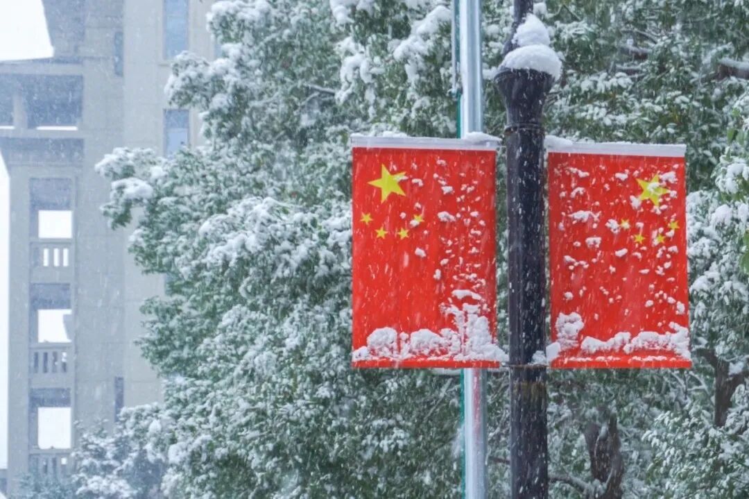 秋叶灿金,冬雪皑皑