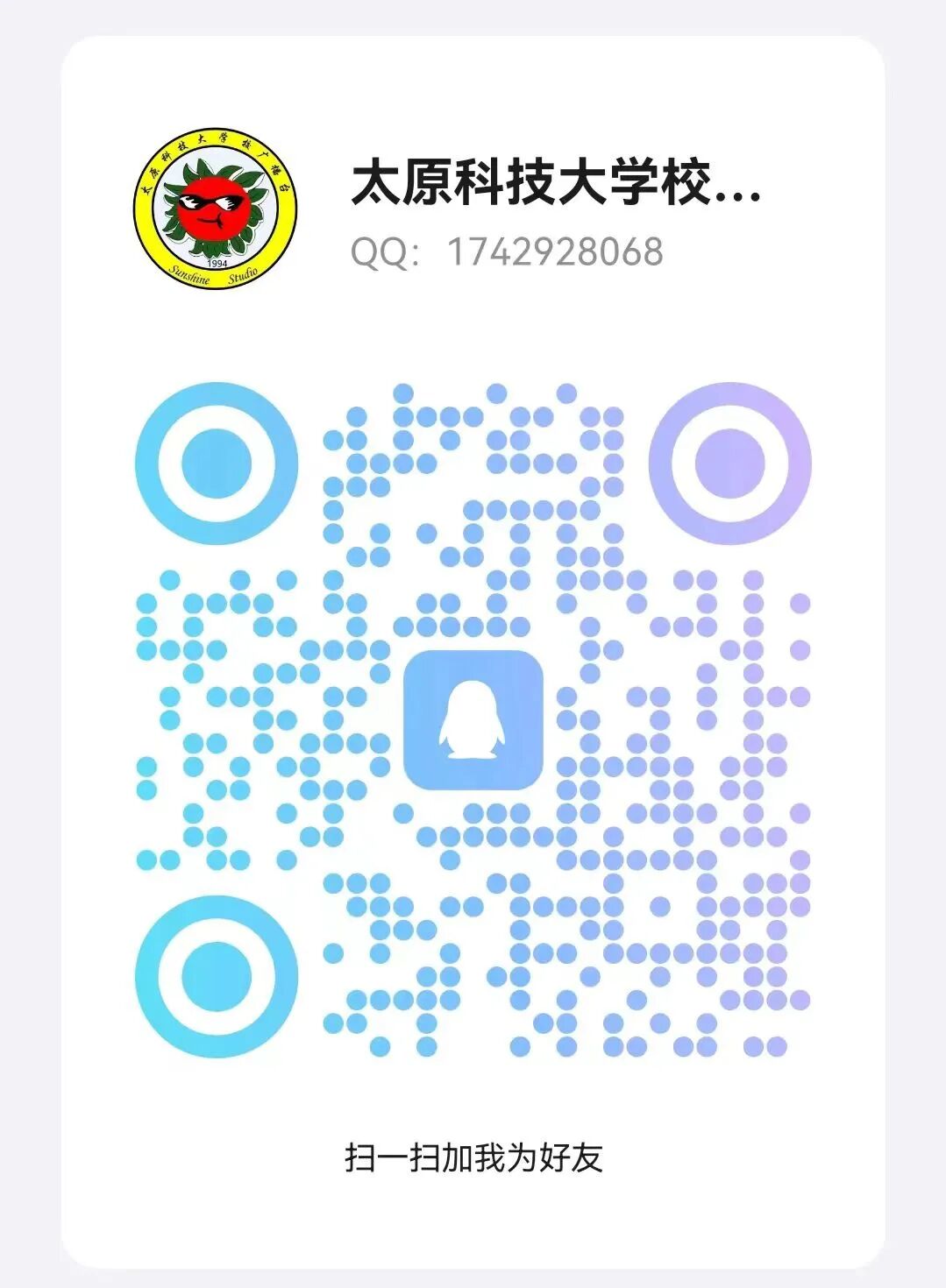 如果各位同学们想要点歌,请关注太原科技大学校广播台QQ号并留言,你点播的歌曲将会在晚21:30的“金色祝福”栏目播放哦!
