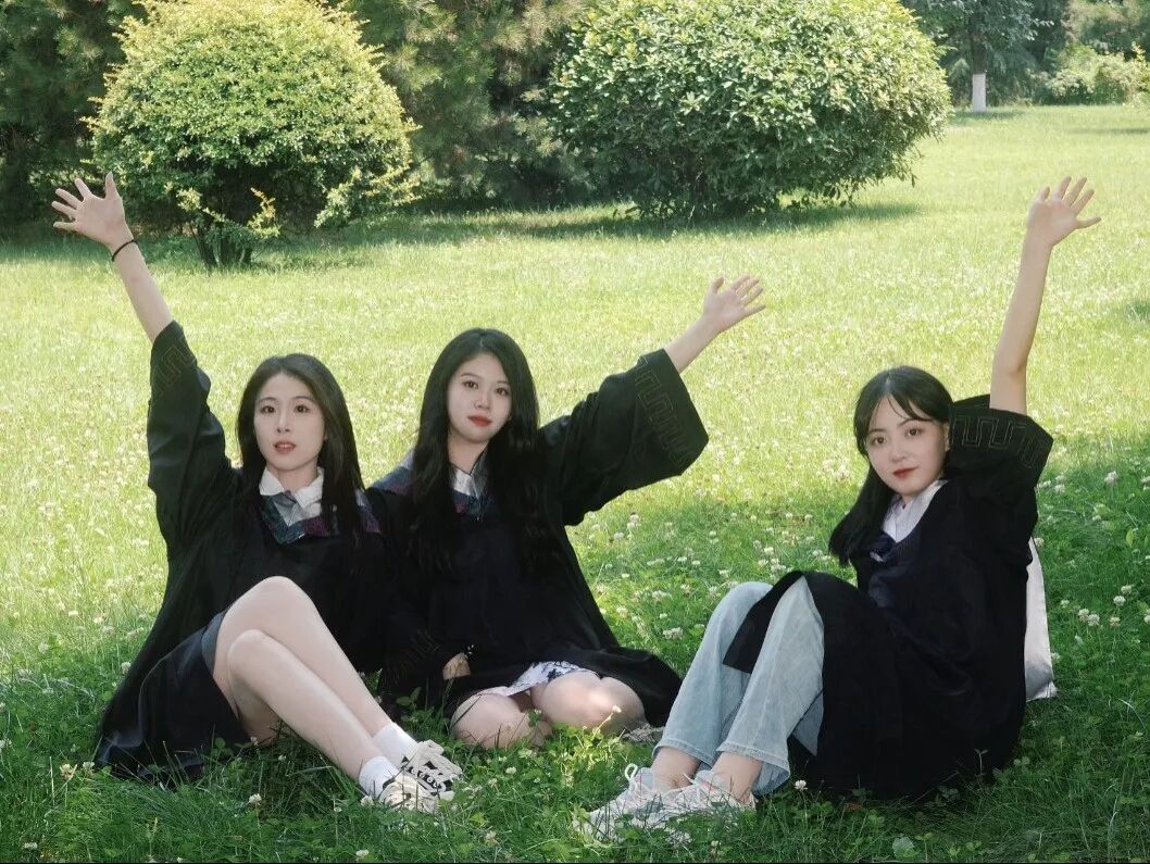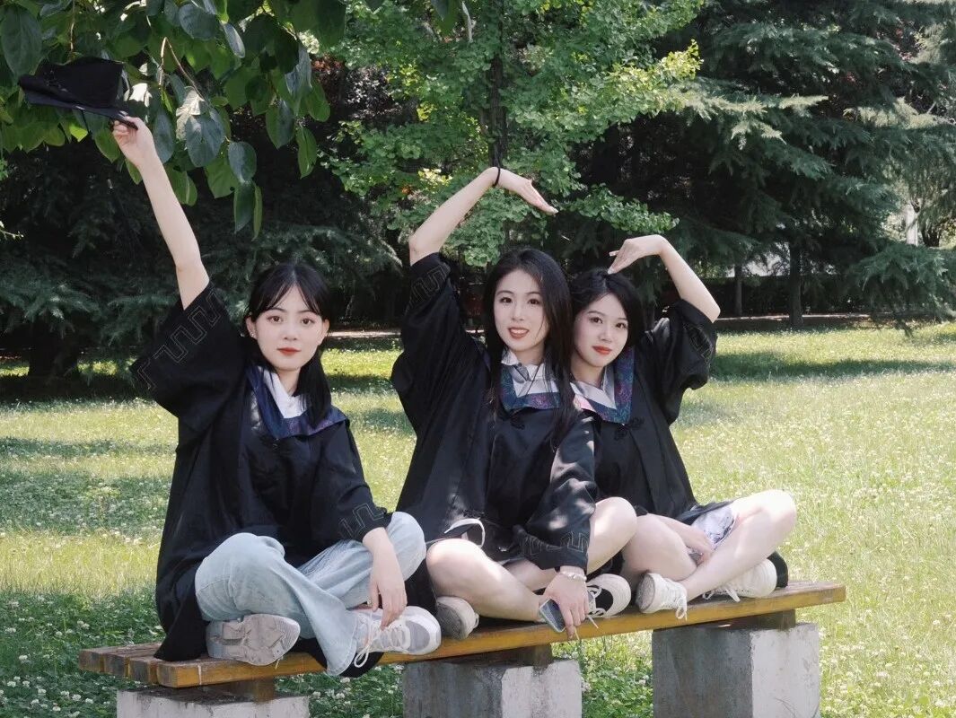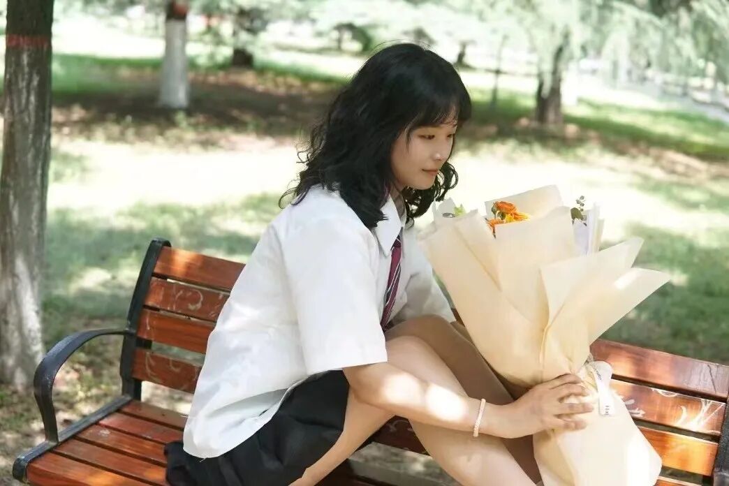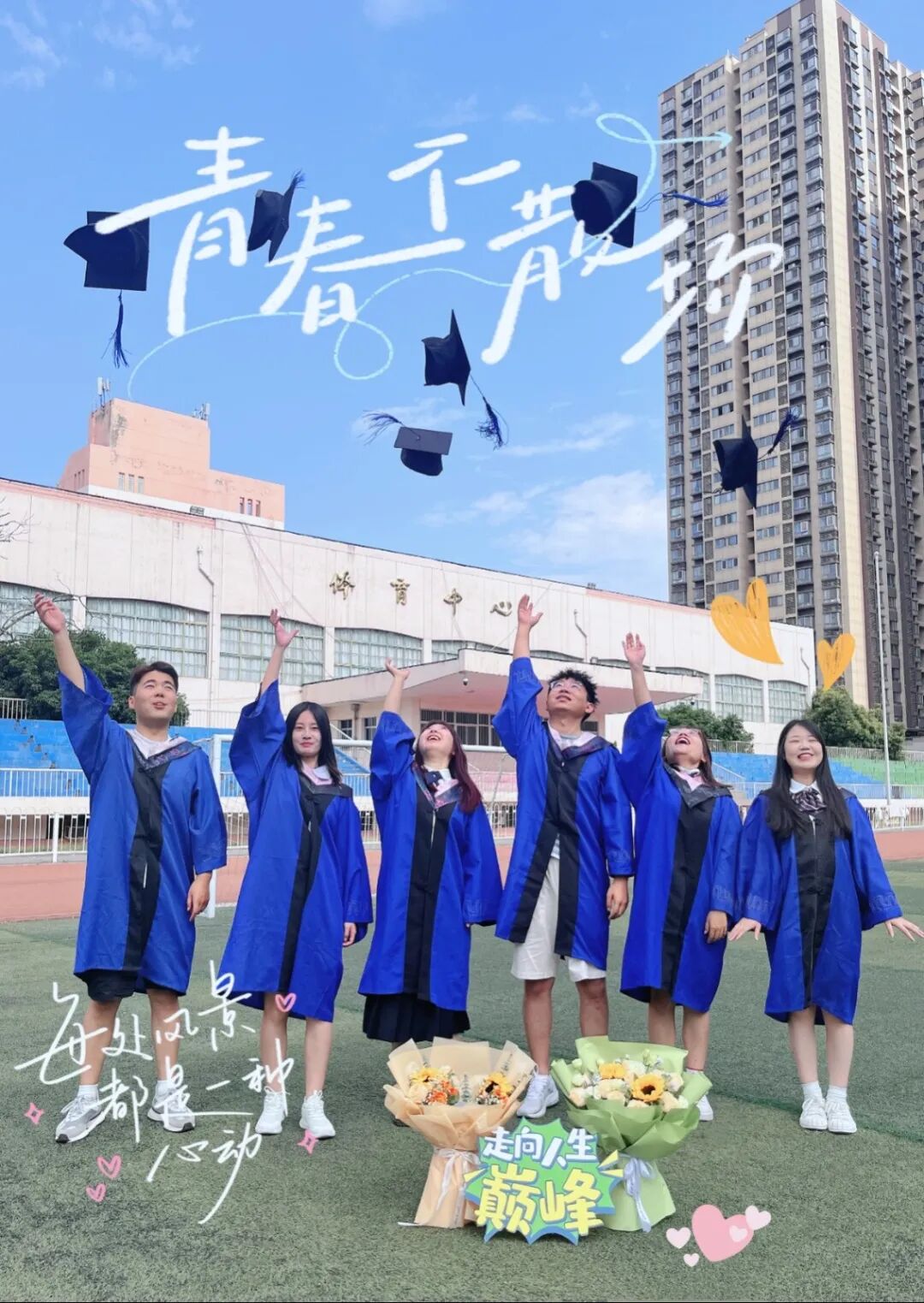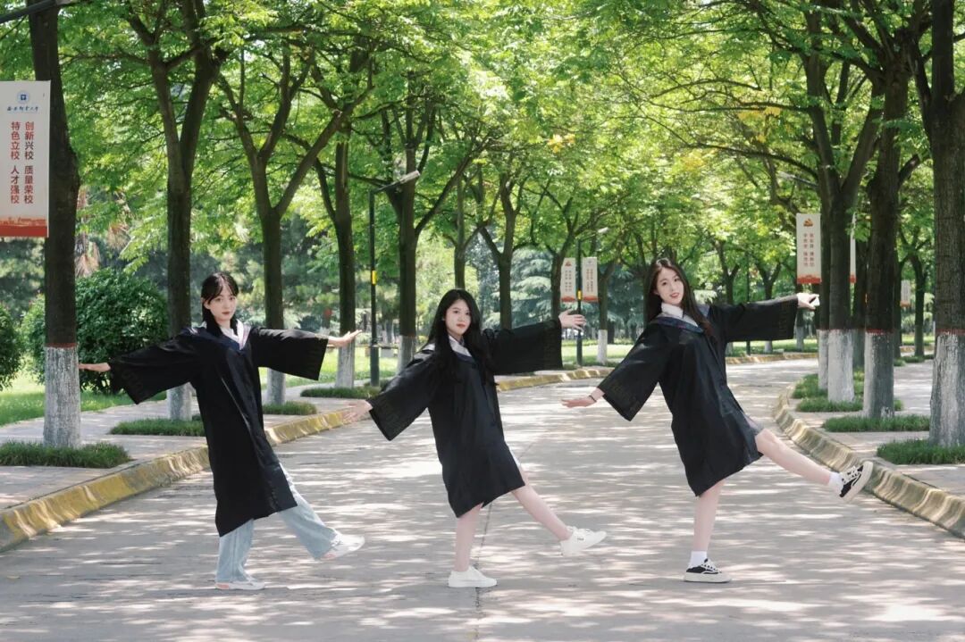 “林荫道旁,这一刻定格了我们青春最美好的模样。”