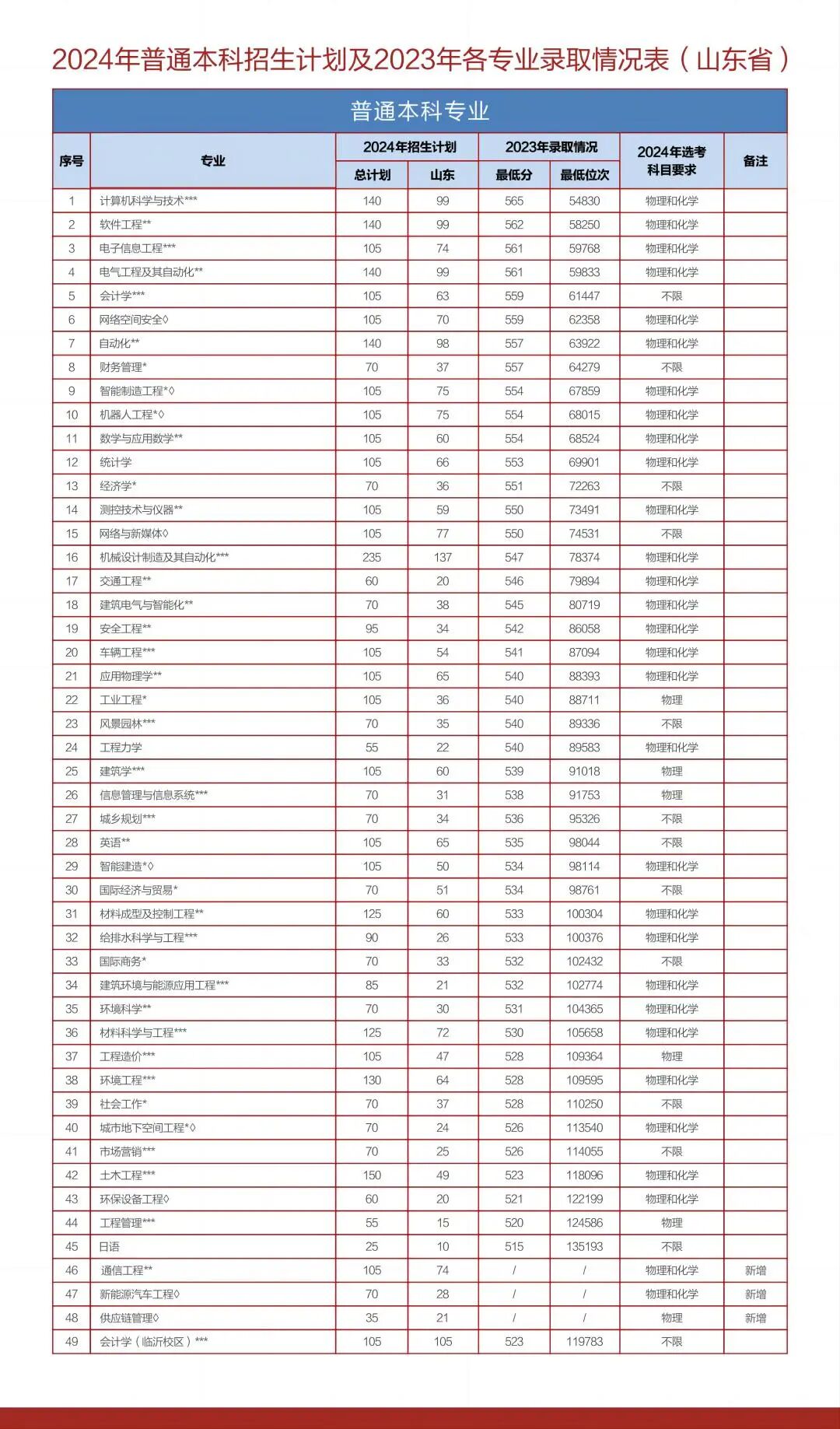 山东省招生计划