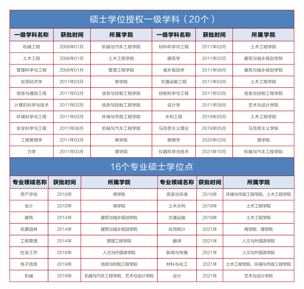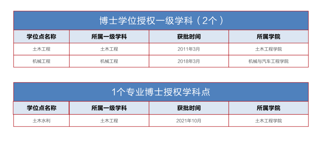 学校拥有本科、硕士、博士完整的人才培养体系,涵盖理工经管文法艺等7大学科门类,拥有2个一级学科博士后科研流动站、2个博士学位授权一级学科,1个专业博士授权学科点,20个硕士学位授权一级学科,16个专业硕士学位点。