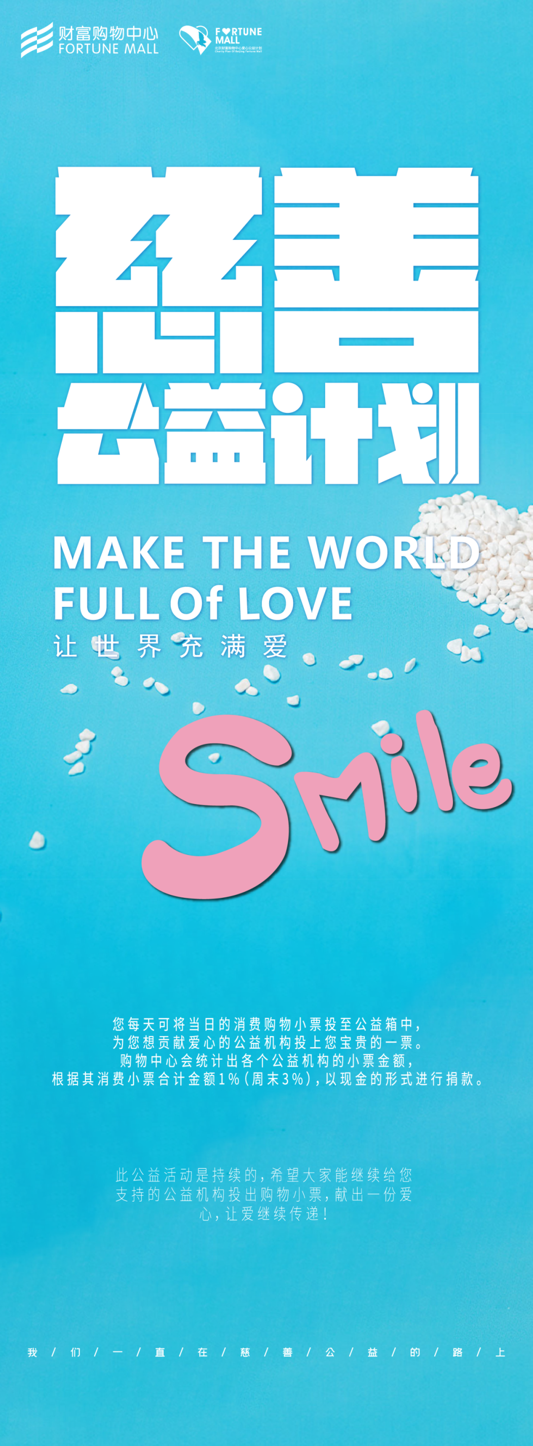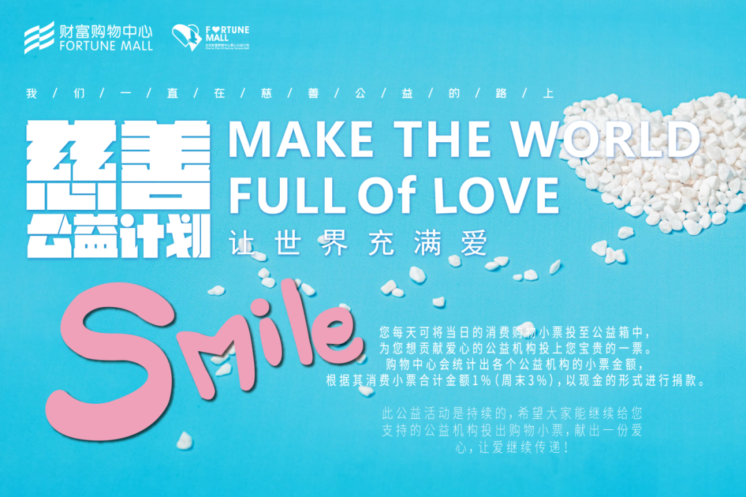 北京财富购物中心一直坚定地为公益事业奉献着自己的力量。