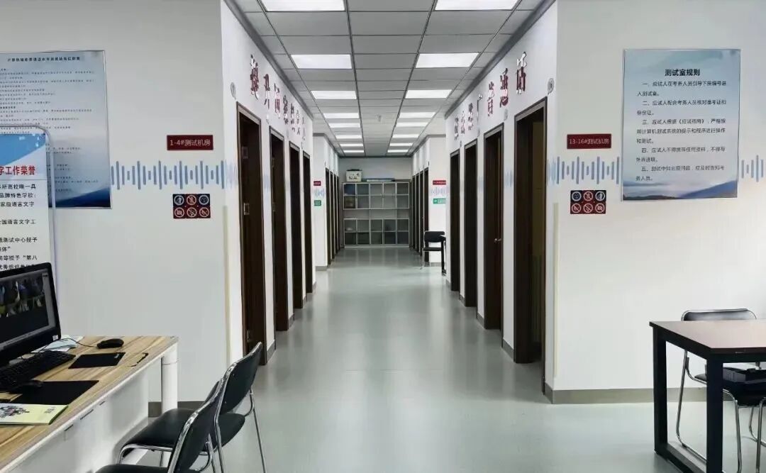 现有十六个测试端口,一间信息采集室。主要设备包括测试用计算机、监考机、测试软件、指纹采集、身份证识别以及图像、声音采集器等。