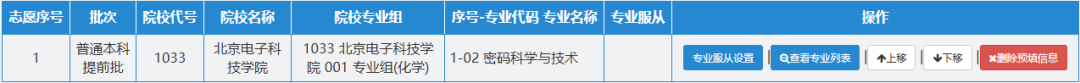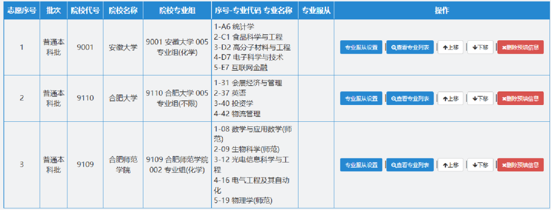 2. 导入后,填报的志愿以代码的形式显示,这时候可以进行修改调整: