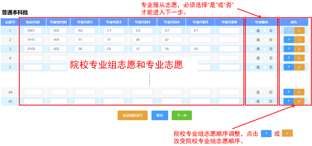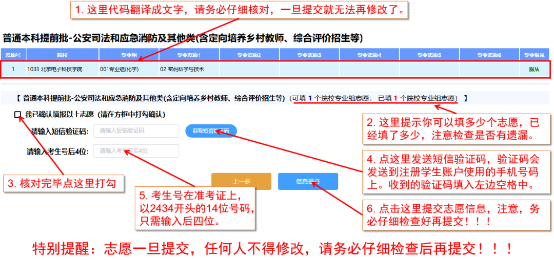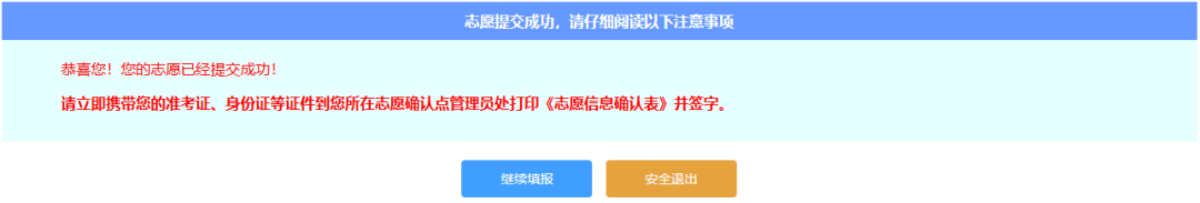 1. 志愿提交之前,务必仔细检查,注意看清页面提示信息,志愿一旦提交,任何人不得修改。