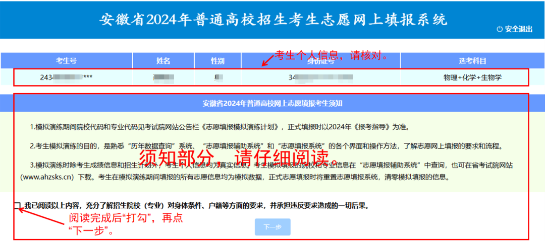 👉第二步:阅读志愿填报考生须知,请注意,在不同批次,须知内容可能不同,要注意阅读,以免错过重要信息: