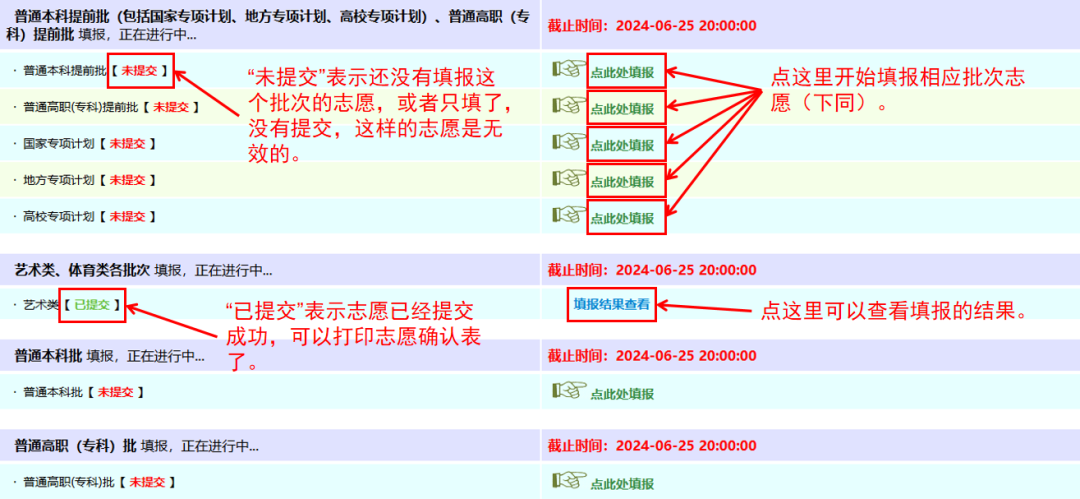 4. 每个批次志愿填报后,都需要进行提交。只填报但未提交的志愿,将被视为无效志愿。