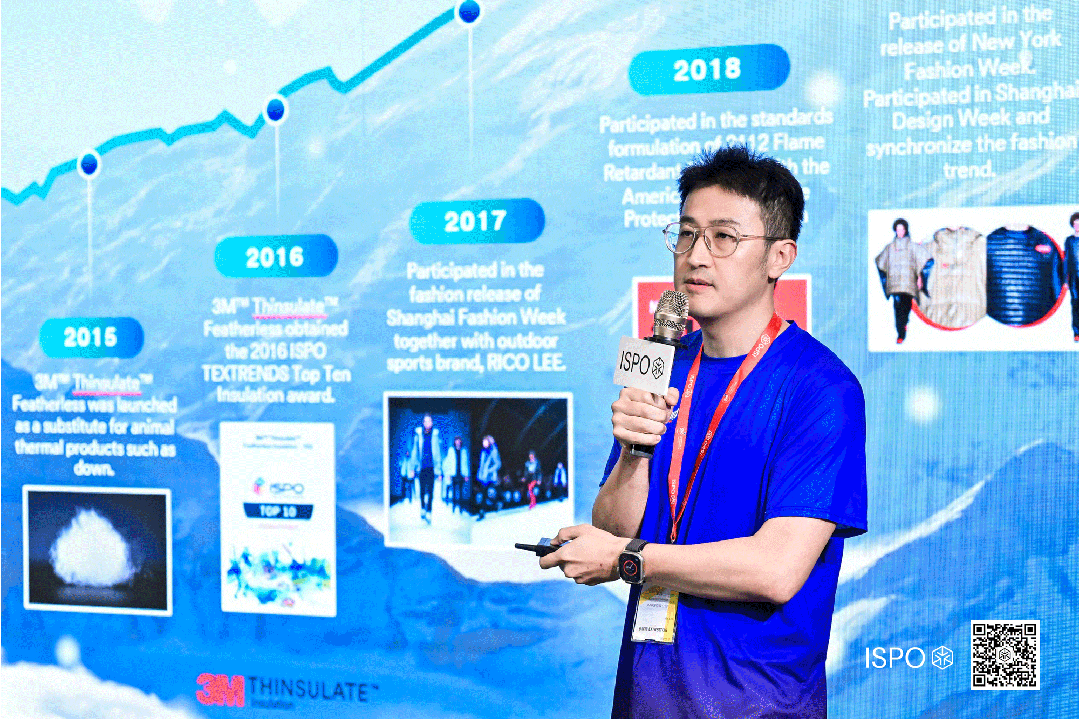 期间,为了更好地推动科技创新和产业发展,3M中国纺织及服饰材料部高级工程师史凡先生受邀出席【ISPO运动时尚流行趋势论坛】,聚焦可持续应用、新材料/新技术应用、行业趋势等话题,分享了一场以《场景化与循环性-3M创新材料科技的新动能》为主题的演讲,干货满满,为行业伙伴开辟和拓宽赛道提供了产业新视角,现场备受瞩目。